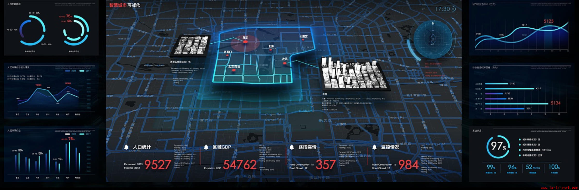 如今大數(shù)據(jù)產(chǎn)業(yè)正在超出我們的想象悄然發(fā)展,而隨著大數(shù)據(jù)時(shí)代的到來(lái),越來(lái)越多的公司開(kāi)始意識(shí)到數(shù)據(jù)資源的管理和運(yùn)用。今天就給大家介紹一些可視化大屏的UI設(shè)計(jì)。