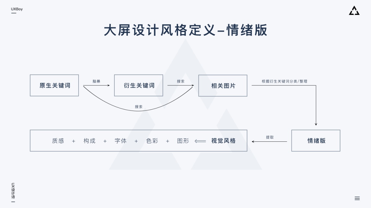 情緒板的一套流程下來,我們定義的風格基本是科學準確的,可以指導我們執(zhí)行設計。如果是給甲方做大屏,這個流程也可以讓我們提出的方案更有說服力。