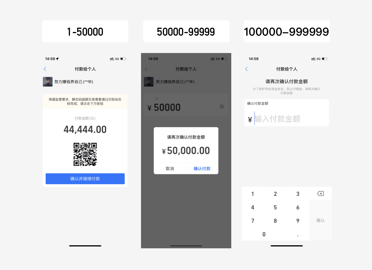 金額超出限制后,通過組件toast提示“付款金額超限”,第一提示框組件很好的限制鍵盤的數(shù)字輸入,避免用戶無效輸入,第二toast提示框的觸發(fā)時機設(shè)計,這里的方案是當(dāng)輸入金額超百萬,按數(shù)字鍵盤的時候就會給予提示,而不是等用戶輸入完之后,再去按確認鍵的時候,彈出來提示金額超限。