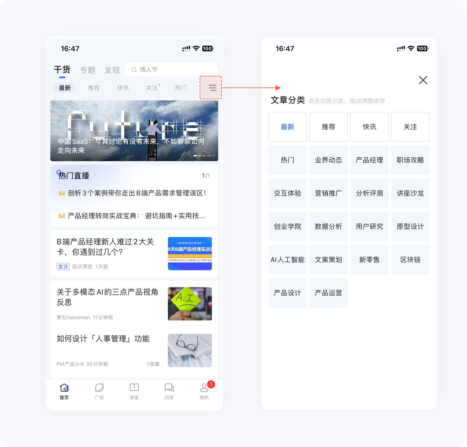在頁面細節(jié)元素設(shè)計上,將角標(biāo)樣式優(yōu)化為右側(cè)的書簽的樣式,整體感受更像現(xiàn)實生活中的書簽。在輔助標(biāo)簽的設(shè)計上,將純文字樣式優(yōu)化為右側(cè)這種多彩面型的樣式,強化內(nèi)容的豐富和多元。