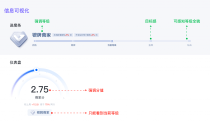 我們要強化商家的等級感知,通過視覺和交互引導(dǎo)等方式,強化商家對等級感知的重要性和影響。