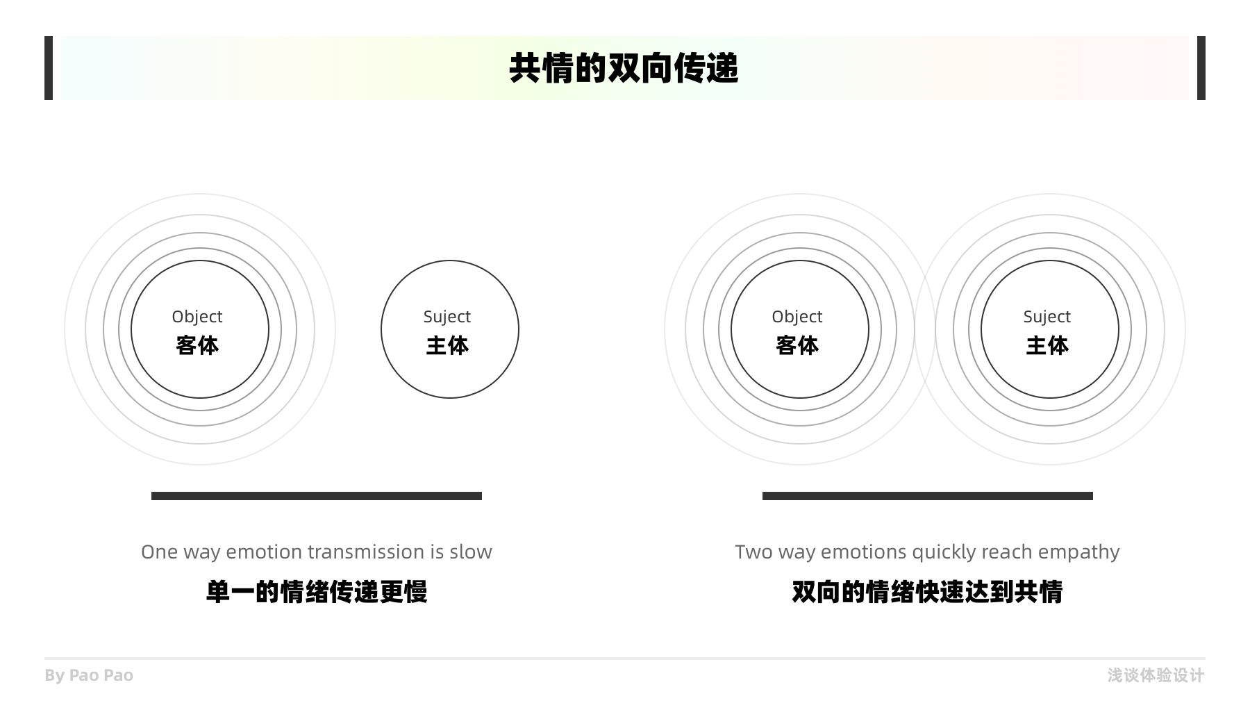 對于“共情”我更多的理解成是兩個或多個載體之間的一種共識一種情緒共鳴,然后再到行為跟思維上的影響。但實際上發(fā)生完全的共情是不可能的,有時連我們自己也會做一些無法理解的迷惑行為,并且客體是多樣化的,可以是跨物種的,跨維度的。而我們要做的就是在工作中定義共情的有效范圍,盡可能的與目標用戶產(chǎn)生共情以了解更多信息或需求,然后去定義和構(gòu)思新的需求與設計。共情很重要,但它不是設計工作中的全部,有效而不要過度的使用也很重要。