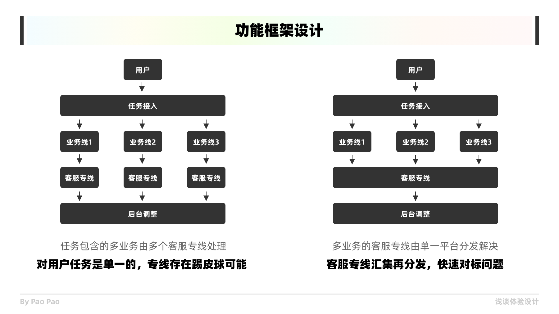 在構(gòu)建產(chǎn)品業(yè)務框架時,大多可能會出現(xiàn)以公司服務資源為中心的構(gòu)建方式,但同時這種由內(nèi)而外開發(fā)方式會為產(chǎn)品帶來更多的弊端(往往產(chǎn)品投入使用后,會出現(xiàn)超出預期的問題)。嘗試去站進用戶的鞋子里去,或者找來目標用戶甚至是相關(guān)的專家來做咨詢,減少研發(fā)迭代的彎路。