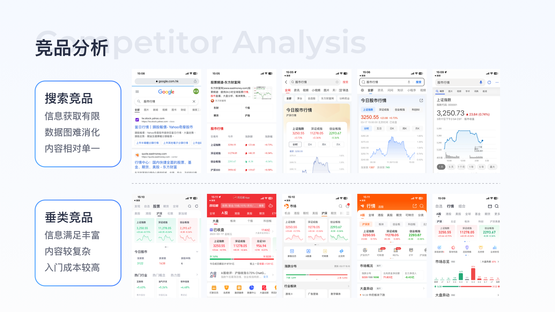 垂類競(jìng)品分析:更專業(yè),信息滿足更豐富,但頁(yè)面內(nèi)容較繁雜,對(duì)于小白用戶來說入門成本較高。