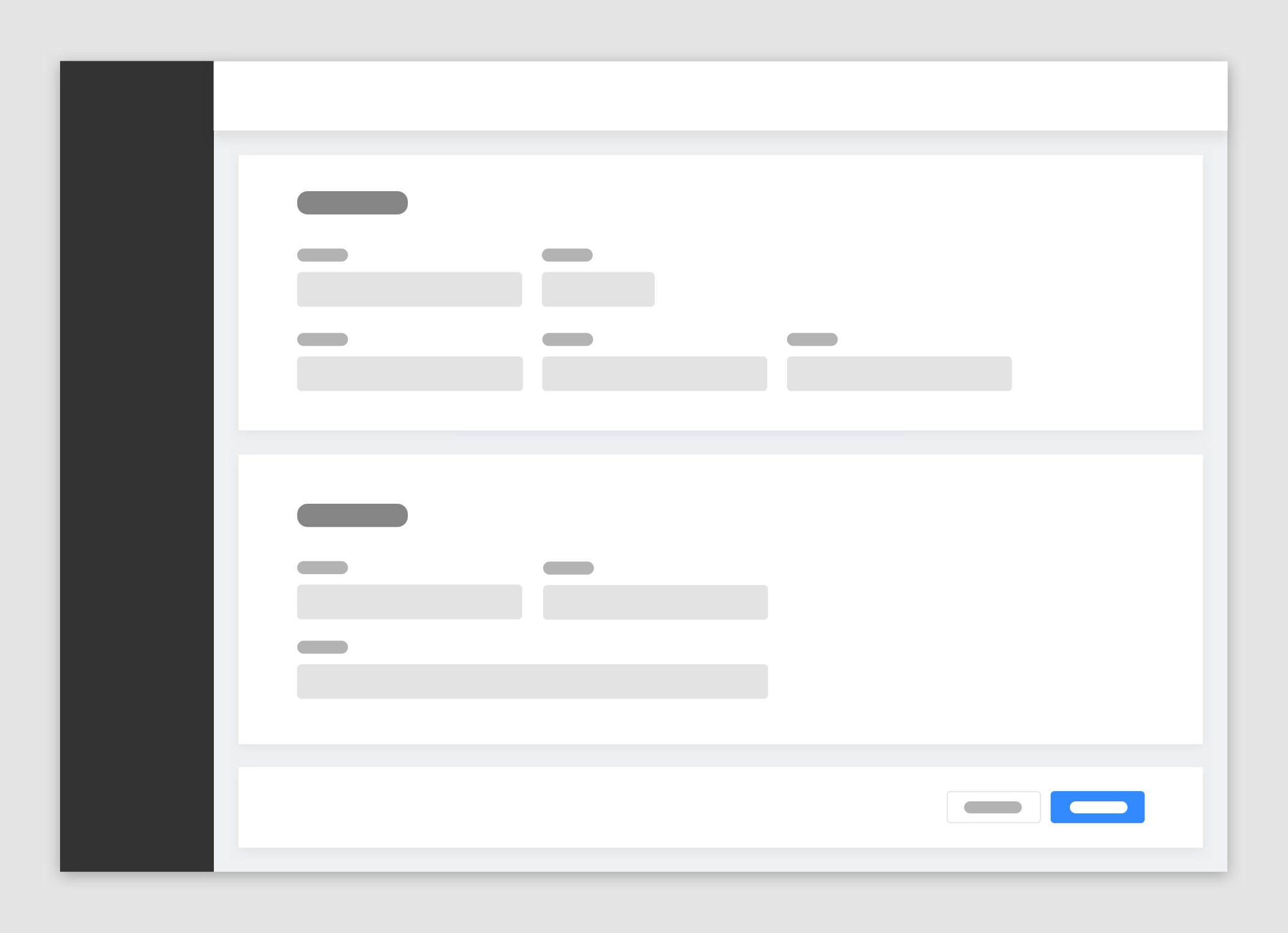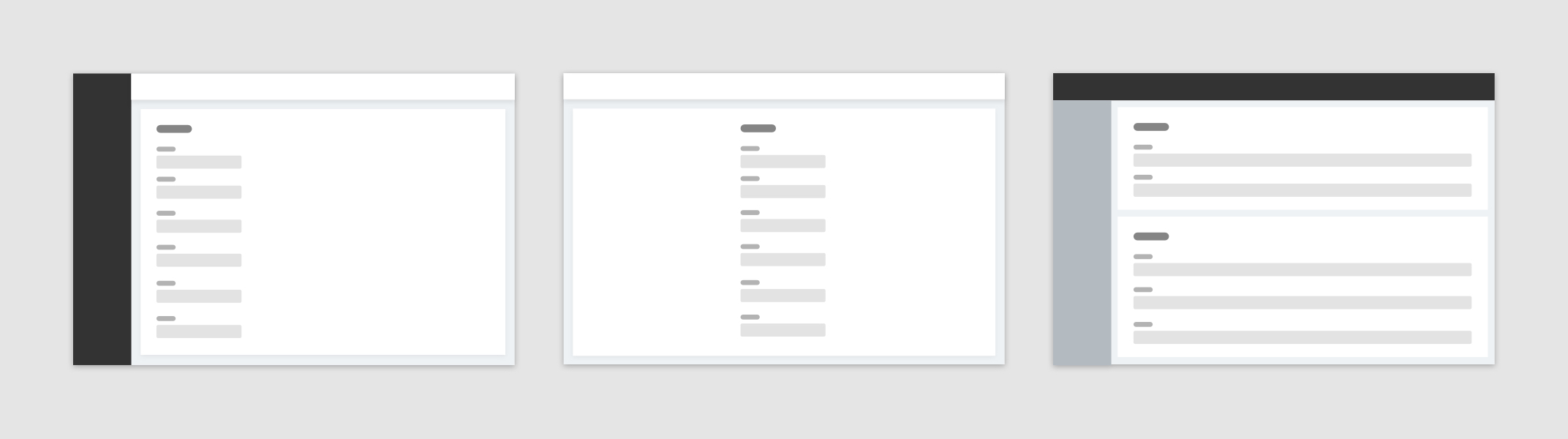 卡片分組布局一般用來處理高復(fù)雜類型表單。當(dāng)業(yè)務(wù)中希望頁面承載眾多表單字段時,可將信息相關(guān)性弱的字段拆分為多個部分,并通過多個卡片分組承載不同類型字段,每個卡片都需有個卡片類別標(biāo)題。