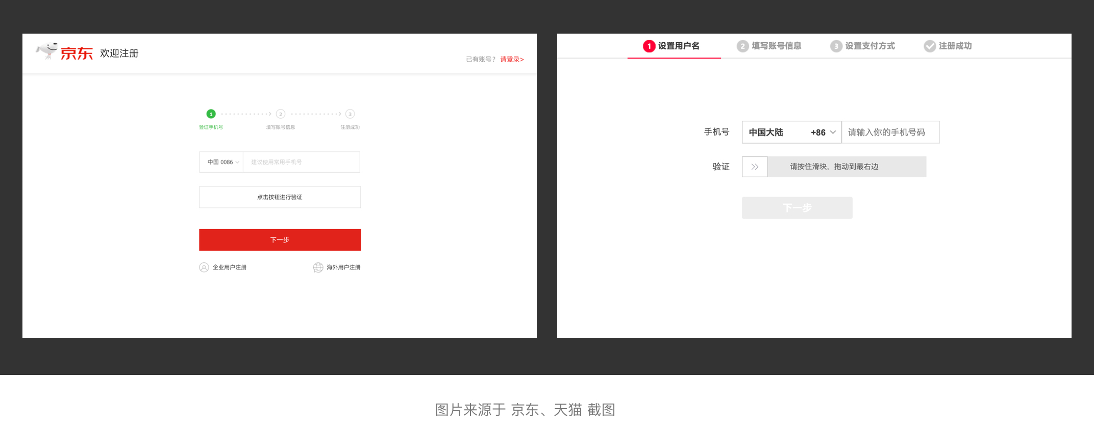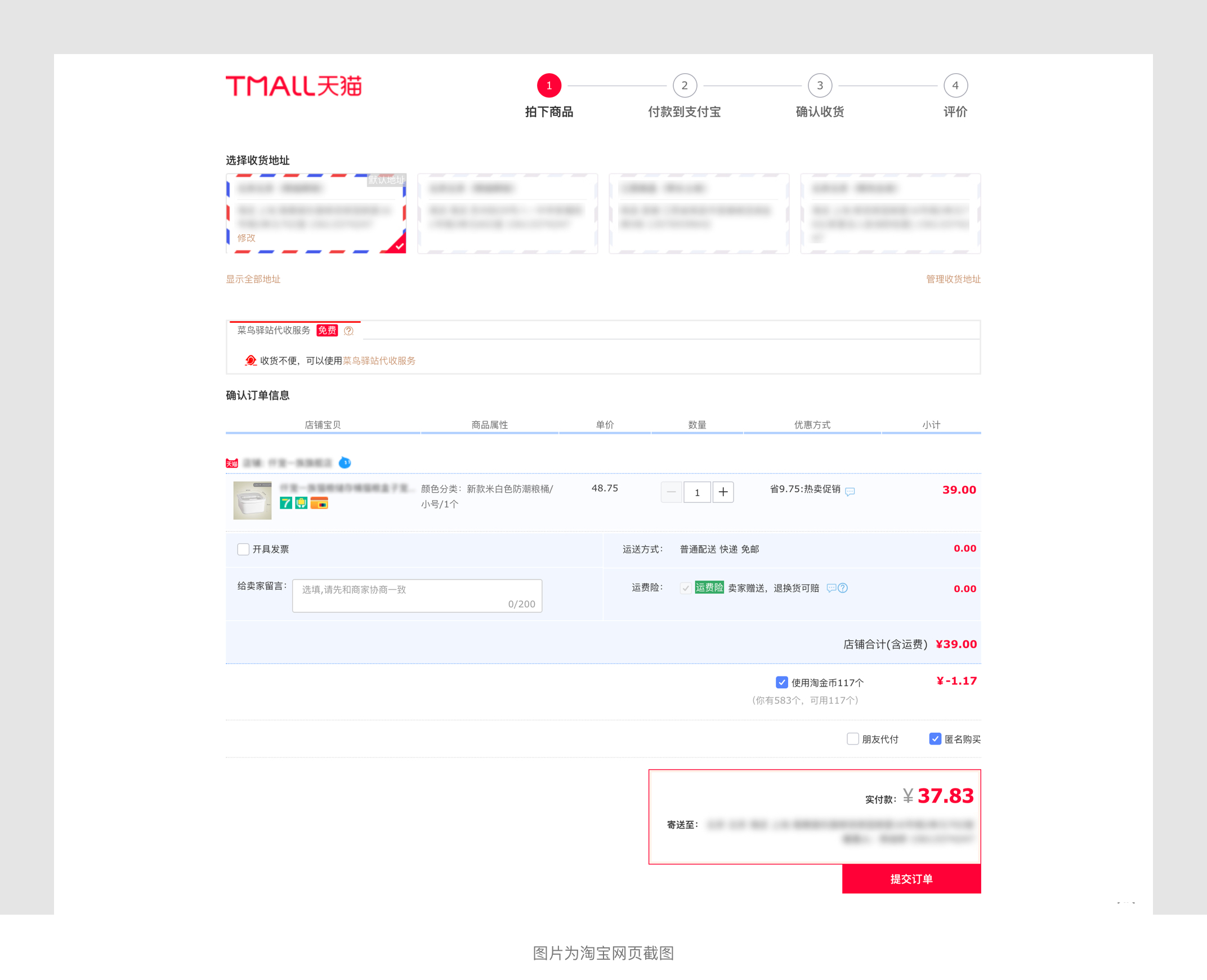我們以淘寶來舉個典型的例子,淘寶屬于國民電商平臺也是亞洲較大的網(wǎng)上交易平臺,提供各類優(yōu)質(zhì)商品。從平臺的特性來講,它以用戶下單并成交作為最終目標(biāo)。其中支付表單起著一個關(guān)鍵的作用,用戶從購買到支付完成以分步形式進(jìn)行,第一步填寫基本信息并提交訂單,第二步選擇商品并選擇支付貨款至第三方,第三步買方確認(rèn)收貨并自動打款給商家,第四步完成訂單并評價。在填寫表單時中間沒任何阻斷,用戶能很順利的按步驟完成訂單。淘寶支付表單屬于比較典型的分步表單。
