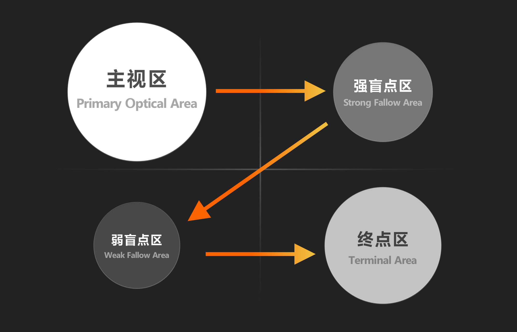 所以,界面中的左上和右下是用戶視覺最為重點關(guān)注的位置。遵循古騰堡法則,設(shè)計師應(yīng)該把界面的關(guān)鍵元素放在主視區(qū),終點區(qū)可以放按鈕、強提示,盲點區(qū)可以用來放一些相對次要的內(nèi)容,如輔助圖形、文字信息。