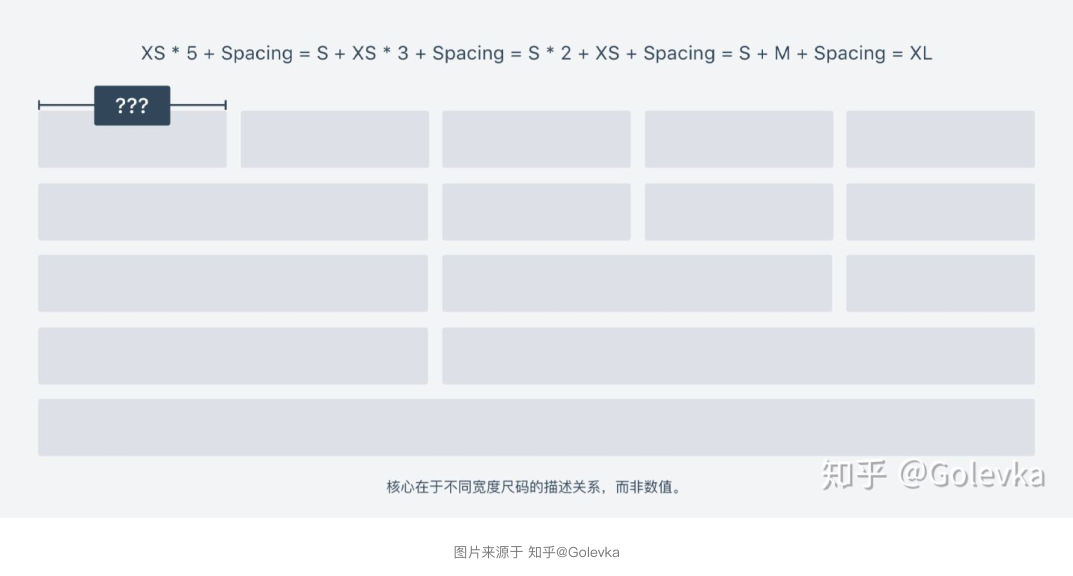 可以給字段設(shè)置幾檔寬度梯度的尺寸,我們可以站在AntDesign這個巨人的肩膀汲取一些相關(guān)經(jīng)驗,其中4.0系列分享的文章中總結(jié)到其經(jīng)過對十幾個業(yè)務(wù)線梳理,將組件寬度定義了5中高頻的空間尺寸,分別是: XS(80~160px)、S (160~280)、M(280~360px)、L (360px~480px)、XL (480~560px)。根據(jù)原理,我們可以假設(shè)原子寬度XS為100,那么通過尺寸的倍數(shù)+間距的方式來計算其他的四種尺寸(間距暫定8px情況下得到:S=208px、M=316px、L=424px、XL=532px),通過此計算方式也是用來解決視覺對齊規(guī)則,如下圖所示: