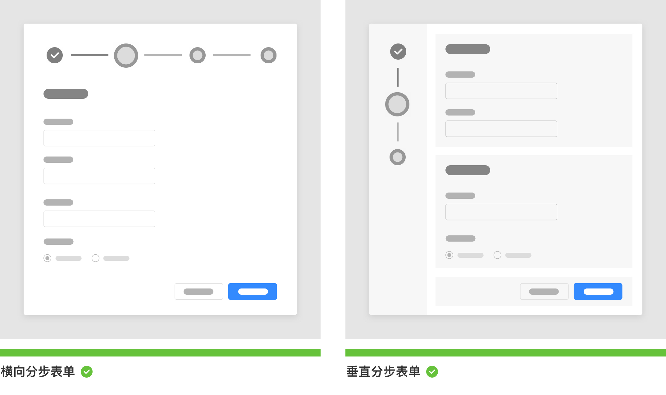 較為復(fù)雜的一類表單,把一個相對復(fù)雜的表單字段拆解為多個步驟進(jìn)行。根據(jù)業(yè)務(wù)屬性進(jìn)行步驟分組利用步驟條告訴用戶所完成的流程和進(jìn)度,當(dāng)用戶每次填寫都意味著一次節(jié)點完成,整個流程結(jié)束給予明確的結(jié)果反饋,并以提交成功為最終。分布表單有利于減輕用戶由于表單大而復(fù)雜的造成的填寫負(fù)擔(dān),并且能減少用戶表單填寫出錯率。