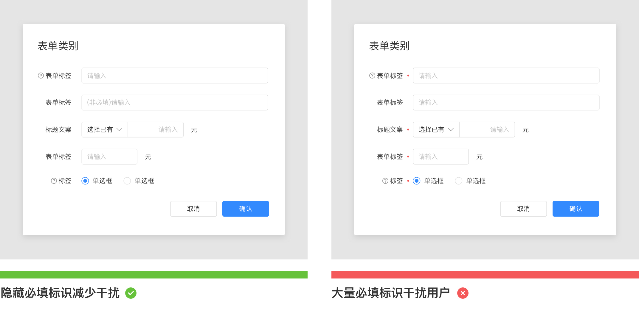 表單類別:第一時間告訴用戶此段落的表單大致內(nèi)容,減少用戶理解并承擔(dān)著概括內(nèi)容的作用;