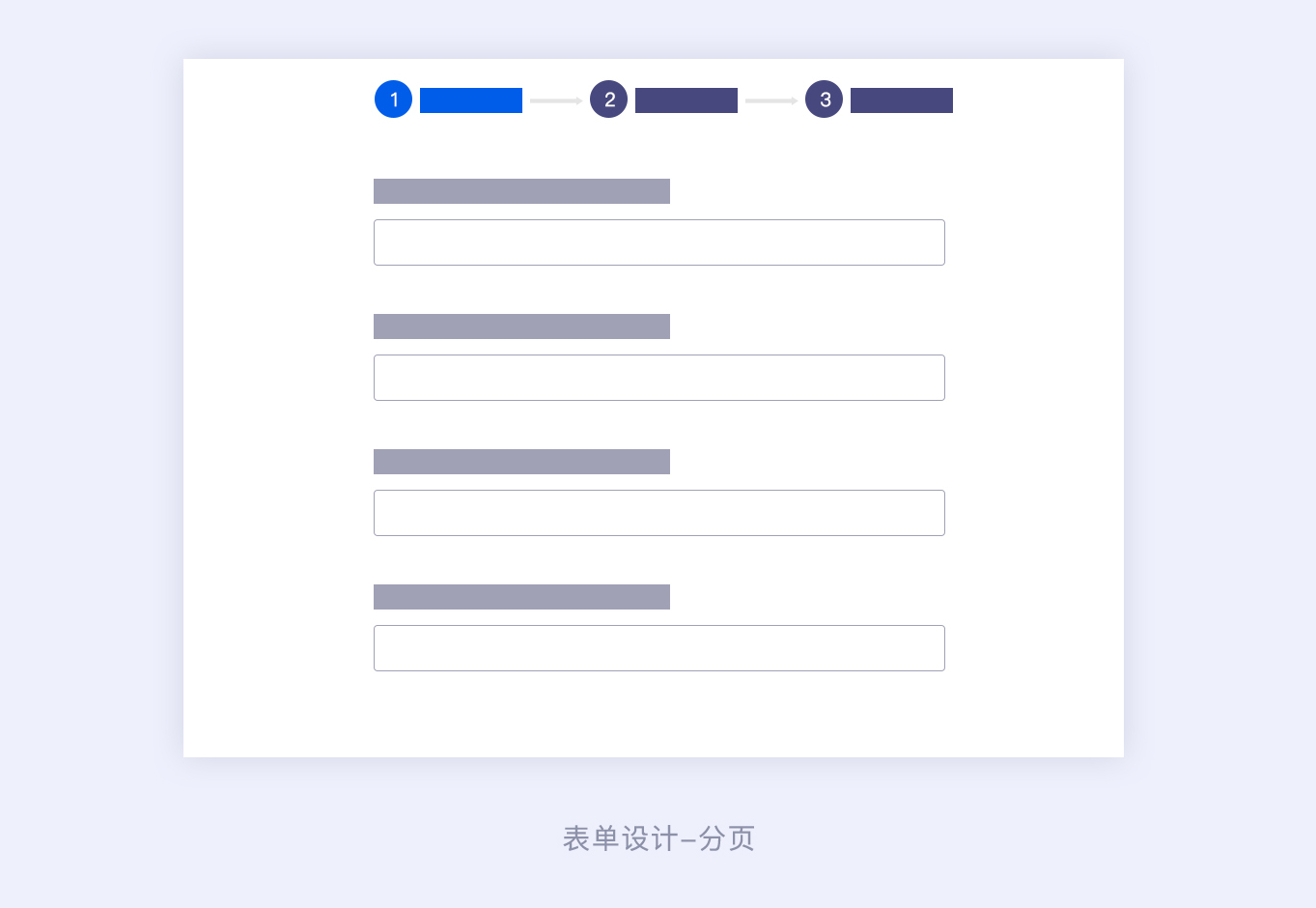 分頁表單設(shè)計一般會針對具有步驟前后順序關(guān)系的表單。也就是指需要先完成上一步表單信息才能進(jìn)入到下一步的表單頁面,形成一個完整的閉環(huán)流程才能使表單信息提交成功。