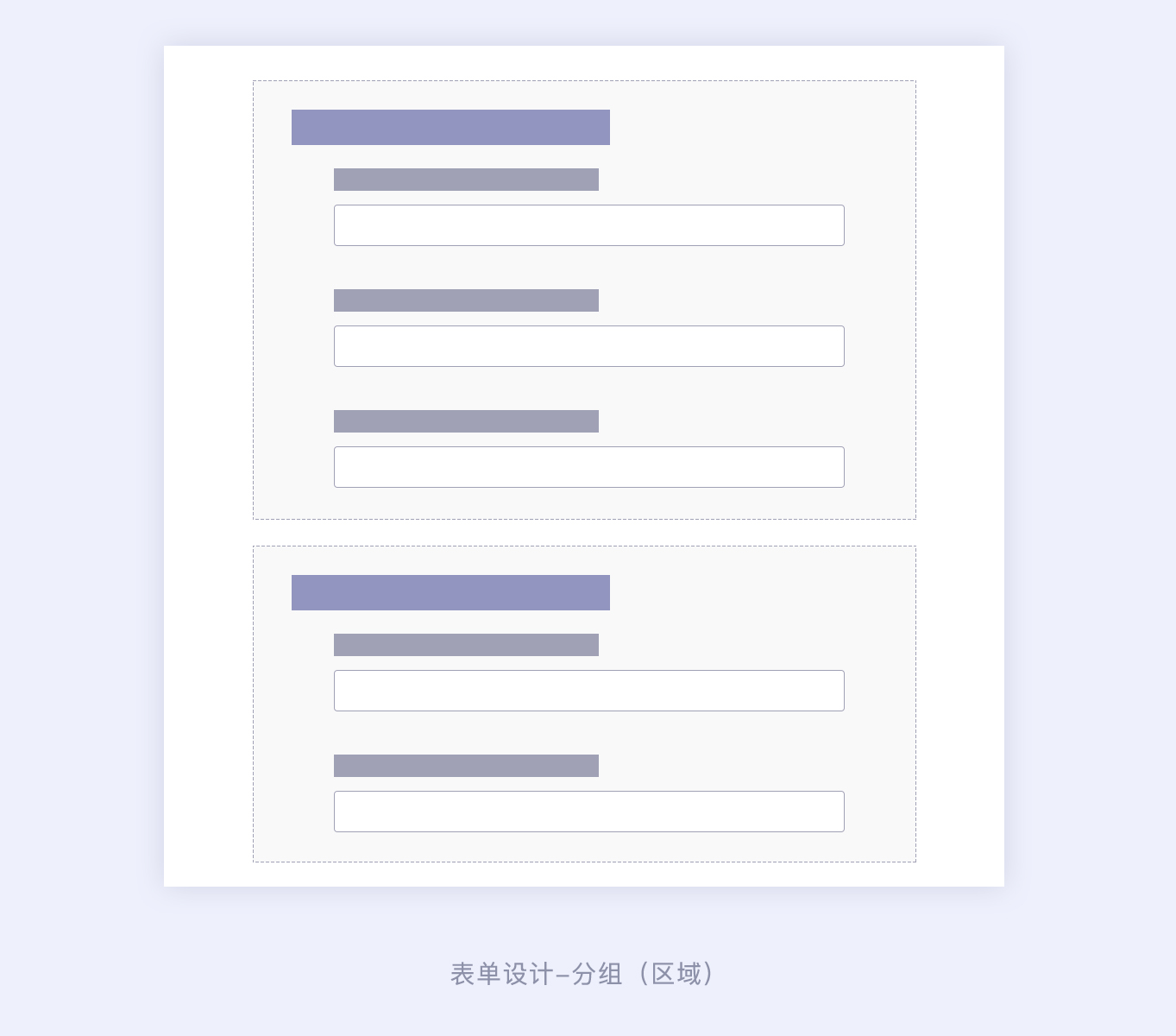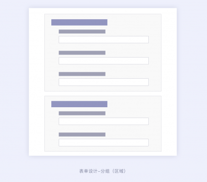 在B端設(shè)計中,一些復(fù)雜的表單會通過區(qū)域分組的形式排版設(shè)計,可以將一個表單的信息通過信息的關(guān)聯(lián)關(guān)系劃分不同的區(qū)域形成小組信息,這樣有利于信息的歸類以及信息的填寫。用戶在看到復(fù)雜表單的時候不會被龐大的表單迷惑,可以更好的找到表單字段,也可以讓用戶填寫表單更有秩序、更清晰。區(qū)域分組的使用場景,一般也是針對復(fù)雜表單且具有強(qiáng)相關(guān)的信息關(guān)系。
