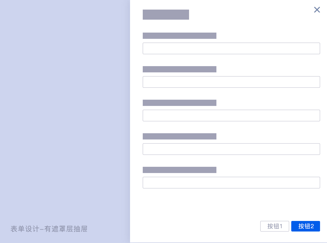 抽屜形式的表單展示方式是從屏幕右側(cè)彈出,有時候也會有從底部彈出的情況。這里主要分享從右側(cè)彈出的抽屜表單模式,抽屜模式還分為三種模式:有遮罩層的抽屜模式、無遮罩層的抽屜模式、擠壓模式。