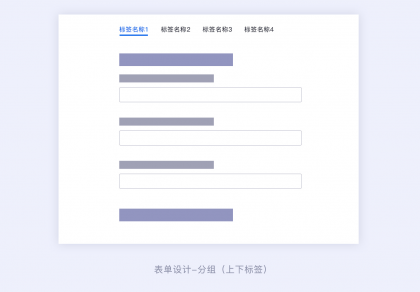 復(fù)雜的表單可以采用區(qū)域分組的形式,還可以采用標(biāo)簽分組的設(shè)計形式。標(biāo)簽分組可以一眼看全所有分組大類信息,對于一個表單涉及到多種信息字段的情況,并且每個組的字段信息都是獨(dú)立的,不是強(qiáng)相關(guān)的,那么我們就可以采用標(biāo)簽分組的形式。