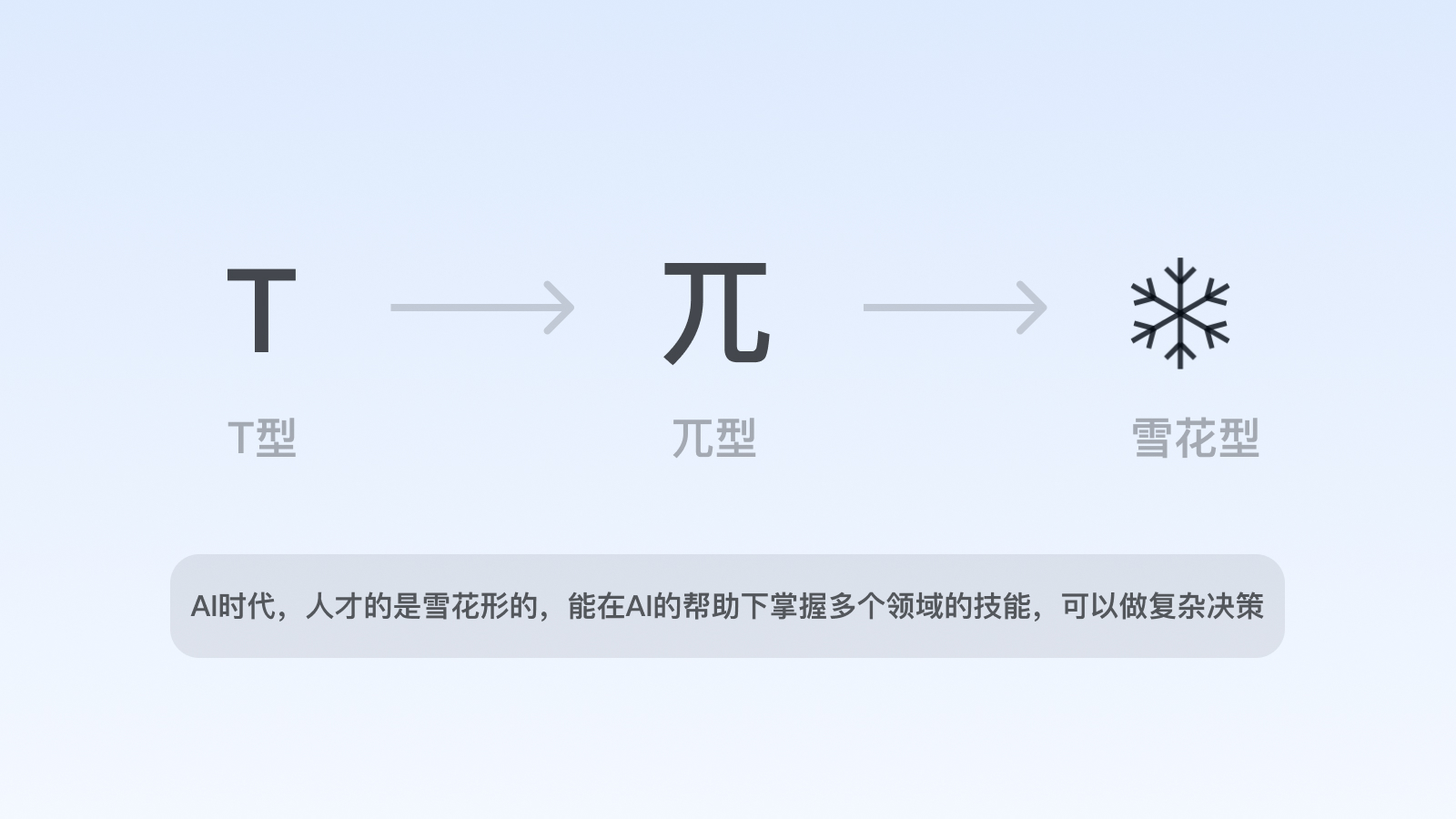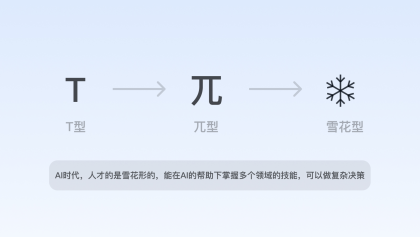 在人工智能時(shí)代,部分重復(fù)性、初級(jí)的設(shè)計(jì)需求將被替代,設(shè)計(jì)師乃至互聯(lián)網(wǎng)職場(chǎng)人的能力維度將隨之會(huì)有所改變,善用AI的綜合能力素養(yǎng)變?yōu)閯傂?,在能力維度上接近于“雪花型”。