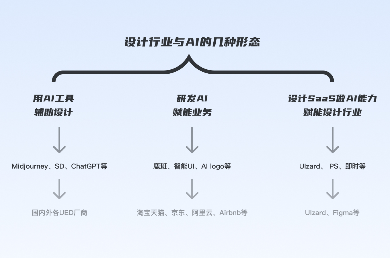 這里不涉及設(shè)計(jì)作為UI、UX接相關(guān)AI業(yè)務(wù)需求的場(chǎng)景,目前主要的關(guān)系是用AI工具輔助設(shè)計(jì),設(shè)計(jì)驅(qū)動(dòng)研發(fā)AI賦能業(yè)務(wù)在部分大廠有,非常稀缺,設(shè)計(jì)SaaS賦能行業(yè)總體來(lái)講玩家數(shù)量有限,這里不再贅述。