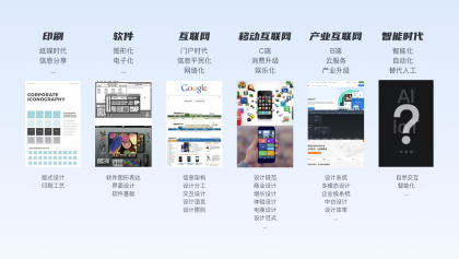 從信息交互的發(fā)展看,設(shè)計(jì)作為一種崗位,服務(wù)于商業(yè)在科技發(fā)展的不同時(shí)期,以平面設(shè)計(jì)為例,對(duì)設(shè)計(jì)師有著不同的要求: