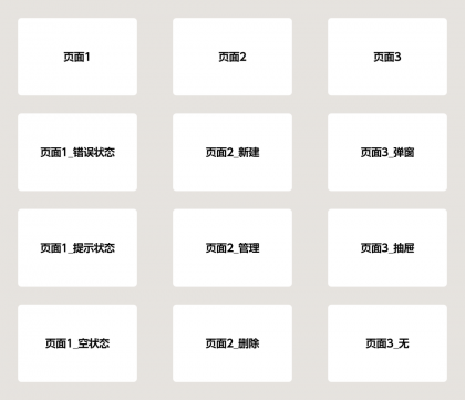 排列頁(yè)面時(shí),也需要具有一定的邏輯,橫向一般表示不同的頁(yè)面,縱向表示同一個(gè)頁(yè)面的事件和狀態(tài)。并且橫豎間距盡量保持統(tǒng)一,建議左右不低于 800px,上下不低于200px 的間隔,這樣即不影響后續(xù)添加說(shuō)明,也不影響前端查看頁(yè)面時(shí)被其它頁(yè)面干擾。