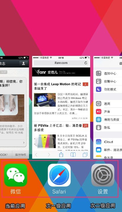 新的多任務(wù)界面依然是通過雙擊 Home 鍵觸發(fā),但無論界面和使用方式,和上一代系統(tǒng)已有了本質(zhì)的區(qū)別。
