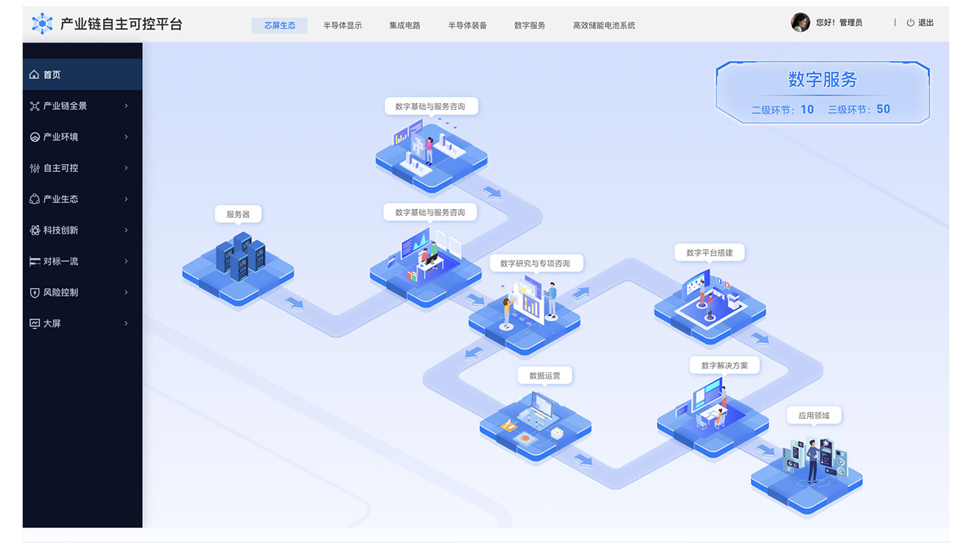 項目背景:產(chǎn)業(yè)鏈自主可控平臺是指一個集成了多方參與者的平臺,旨在實現(xiàn)對整個產(chǎn)業(yè)鏈的自主控制和管理。該平臺通過整合各個環(huán)節(jié)的資源、技術(shù)和信息,以實現(xiàn)產(chǎn)業(yè)鏈的協(xié)同發(fā)展和自主創(chuàng)新。過建立產(chǎn)業(yè)鏈自主可控平臺,可以促進各參與者間的協(xié)同合作,加強產(chǎn)業(yè)鏈的自主控制能力,提高整體競爭力和創(chuàng)新能力,實現(xiàn)更加可持續(xù)和穩(wěn)定的發(fā)展。蘭亭妙微團隊首先設(shè)計了一套高度定制化的動態(tài)數(shù)據(jù)可視化儀表板。