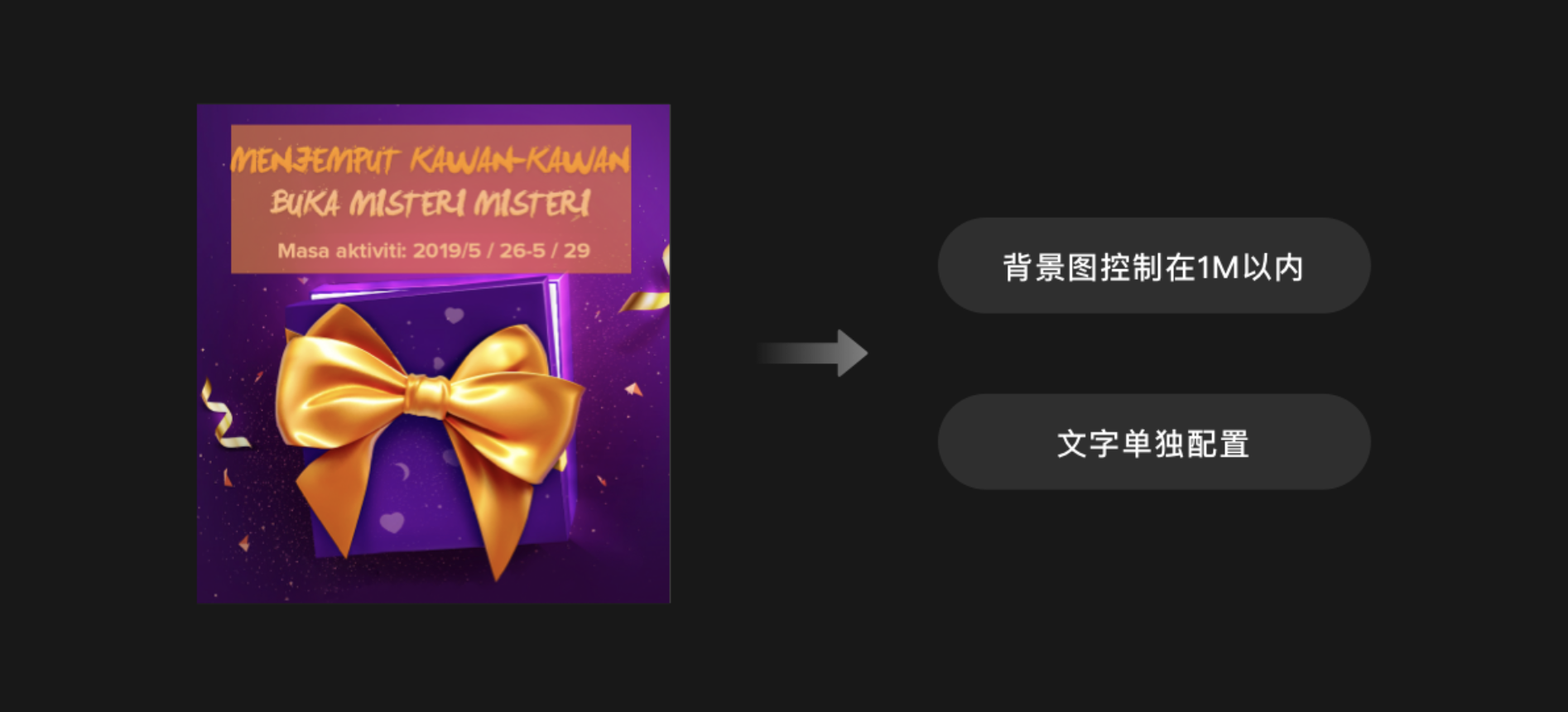 注意不要將文字直接嵌入圖片或視頻媒體中,需要分別以較小的個(gè)體進(jìn)行存儲(chǔ),便于替換。交付給開發(fā) GG 的圖片也必須壓縮一下,不能超過 1M,不然會(huì)影響加載速度。