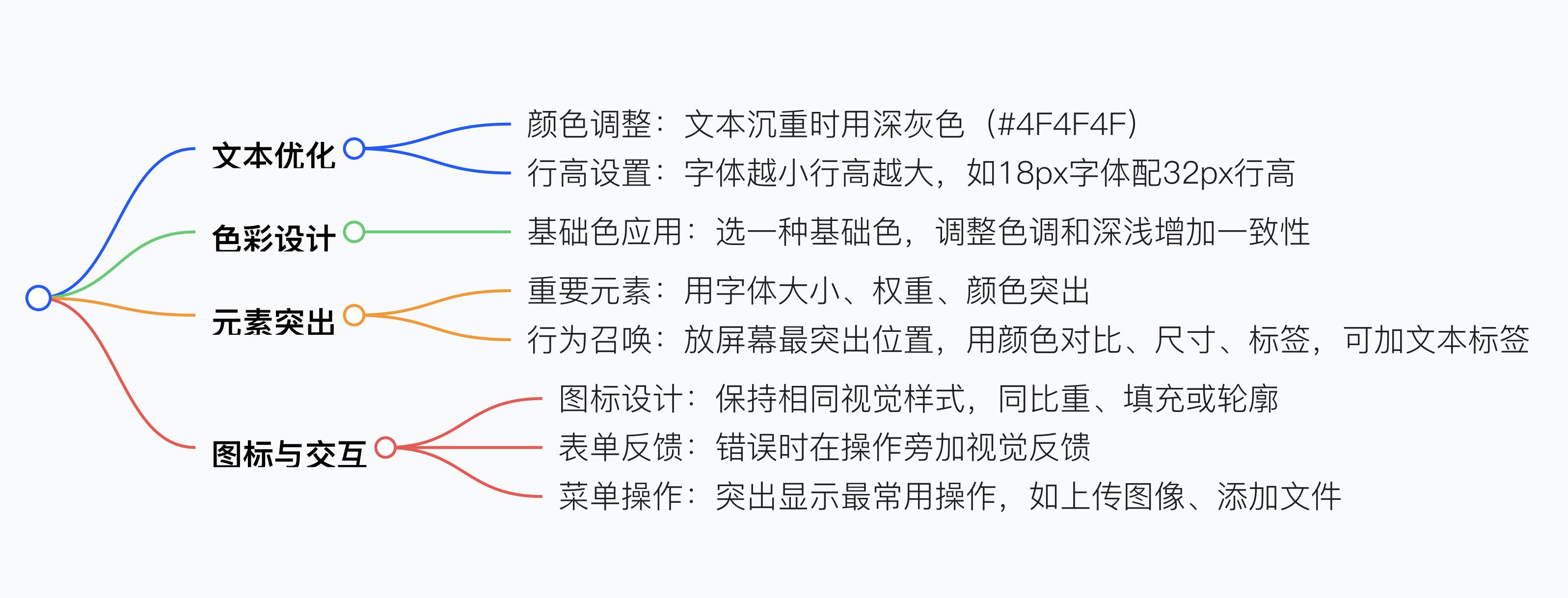 - 當(dāng)長篇內(nèi)容的文本看起來沉重時(shí),可將顏色改為類似深灰色(#4F4F4F),能使文字更易識別,減輕視覺沉重感。