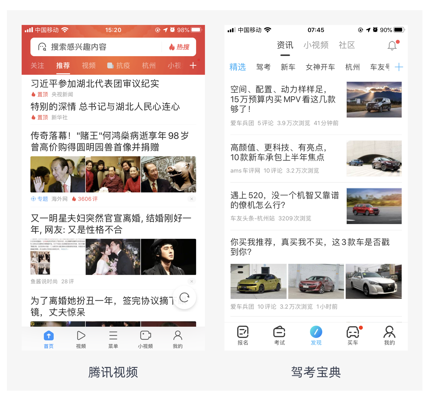 常見的布局方式有左右布局和上下布局,多用于新聞資訊類產(chǎn)品中。比如駕考寶典的資訊頁面,采用上下布局,每條資訊以標(biāo)題為主,搭配輔助圖片,讓用戶能快速了解內(nèi)容概要;騰訊視頻的資訊板塊則運(yùn)用左右布局,左側(cè)是標(biāo)題和簡(jiǎn)要內(nèi)容,右側(cè)是相關(guān)圖片,便于用戶快速篩選感興趣的信息。