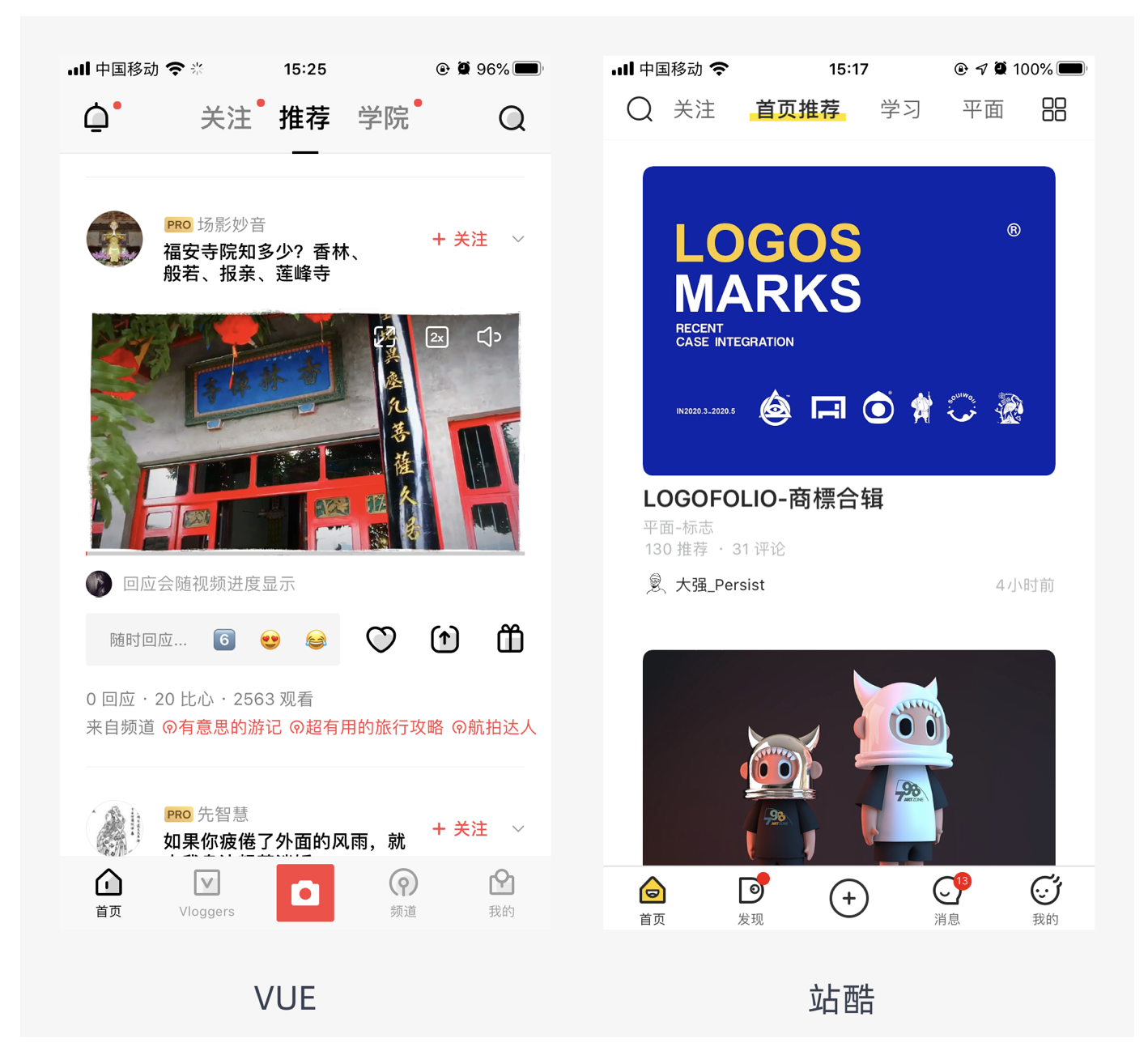 - 展示圖片尺寸固定:不管用戶上傳的是橫圖還是豎圖,展示圖片的比例始終固定,常用的比例有 1:1、3:2、4:3、16:9 等。這種適配方式圖片占用空間小,可提高用戶的閱讀效率,適合想要提高用戶閱讀效率的產(chǎn)品,如站酷的部分頁面,采用固定比例展示圖片,讓用戶能在有限空間內(nèi)瀏覽更多內(nèi)容。