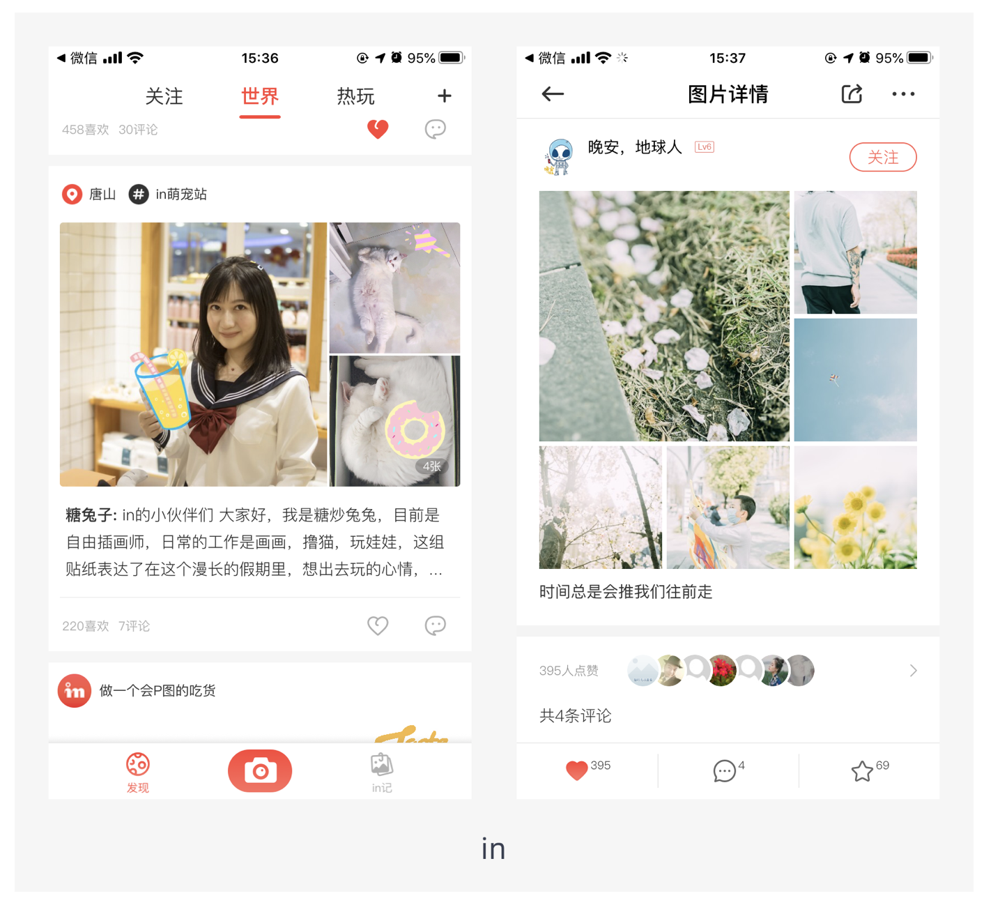 這種布局方式是將幾張圖片拼成一個(gè)矩形,樣式新穎類似雜志的排版,對(duì)圖片質(zhì)量要求較高,多應(yīng)用在圖片社交中,如 in。通過獨(dú)特的拼圖方式,能讓圖片展示更具創(chuàng)意和吸引力,增強(qiáng)用戶的視覺體驗(yàn)。