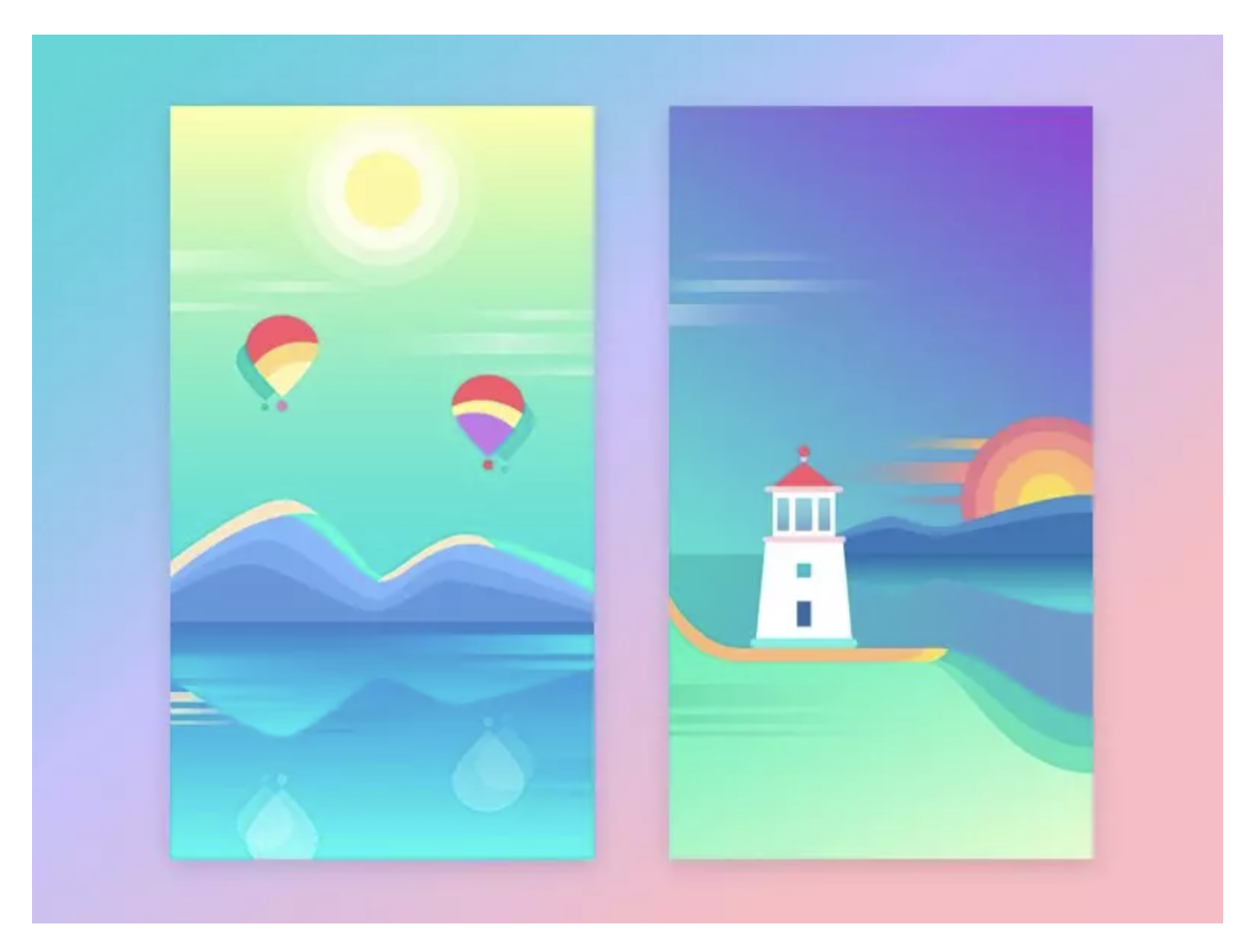 自 2018 年起,漸變成為一種新趨勢,在設(shè)計(jì)中更多地應(yīng)用漸變,能夠增強(qiáng)顏色的感染力。不過,很多設(shè)計(jì)曾傾向于避免使用漸變色,但現(xiàn)在漸變色的潛力越來越大,在設(shè)計(jì)中合理應(yīng)用,反而能為顏色選擇加分。