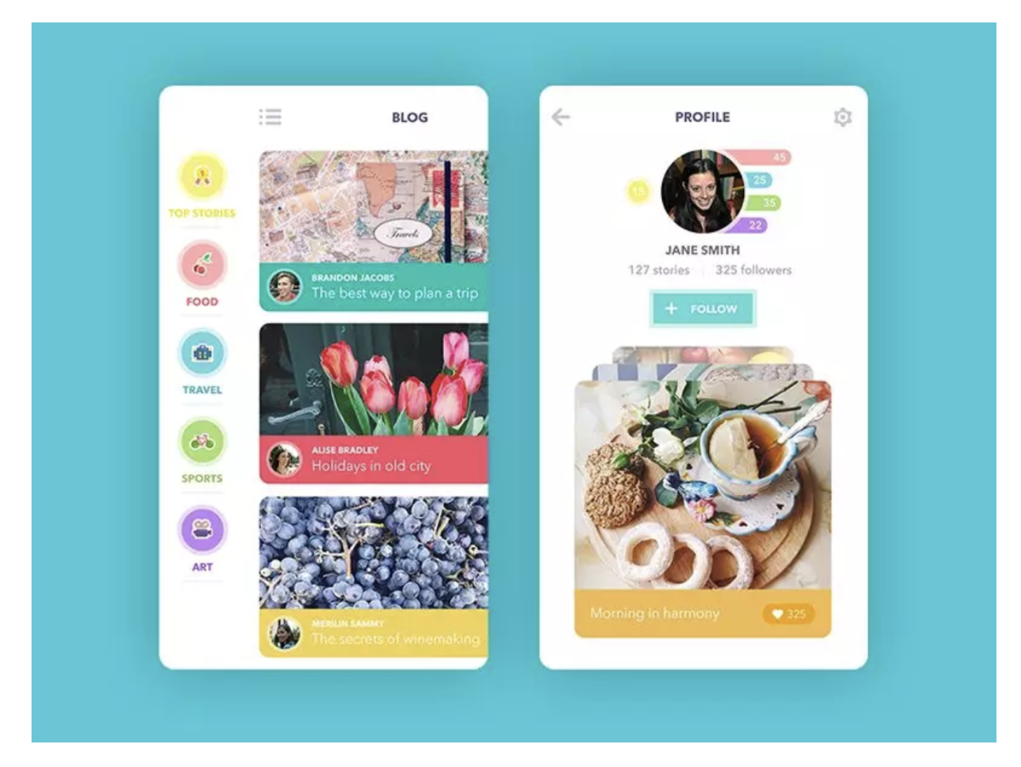 在應(yīng)用或網(wǎng)站設(shè)計(jì)領(lǐng)域,顏色的選擇與組合是設(shè)計(jì)初期的重要組成部分。當(dāng)被問及設(shè)計(jì)之路上的錦囊妙計(jì)時,Ludmila 表示,她在從事任何創(chuàng)作過程中,成功的基石主要有四個:良好的心情、傳遞積極情緒和感情的欲望、靈感以及對設(shè)計(jì)的熱愛。有了這四點(diǎn)作為基礎(chǔ),再加上深入的知識學(xué)習(xí)或藝術(shù)探索與準(zhǔn)備,就能收獲驚人的設(shè)計(jì)效果。