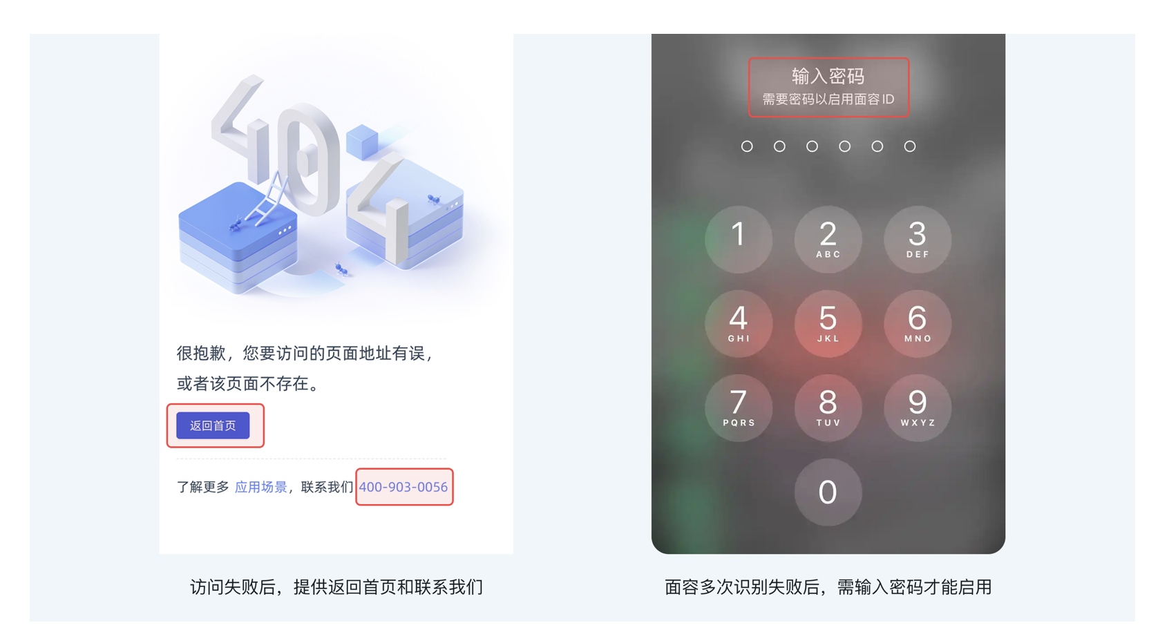 更貼心的設(shè)計(jì):比如 Face ID 連續(xù)識別失敗后,系統(tǒng)會提示 “面容 ID 已鎖定,請輸入密碼解鎖”,并直接彈出密碼輸入框;支付時余額不足,會提示 “余額不足,是否使用微信支付?”,并一鍵跳轉(zhuǎn)微信支付頁面 —— 不讓用戶 “卡在錯誤頁面不知所措”,就是在幫用戶快速回到正確的流程里。