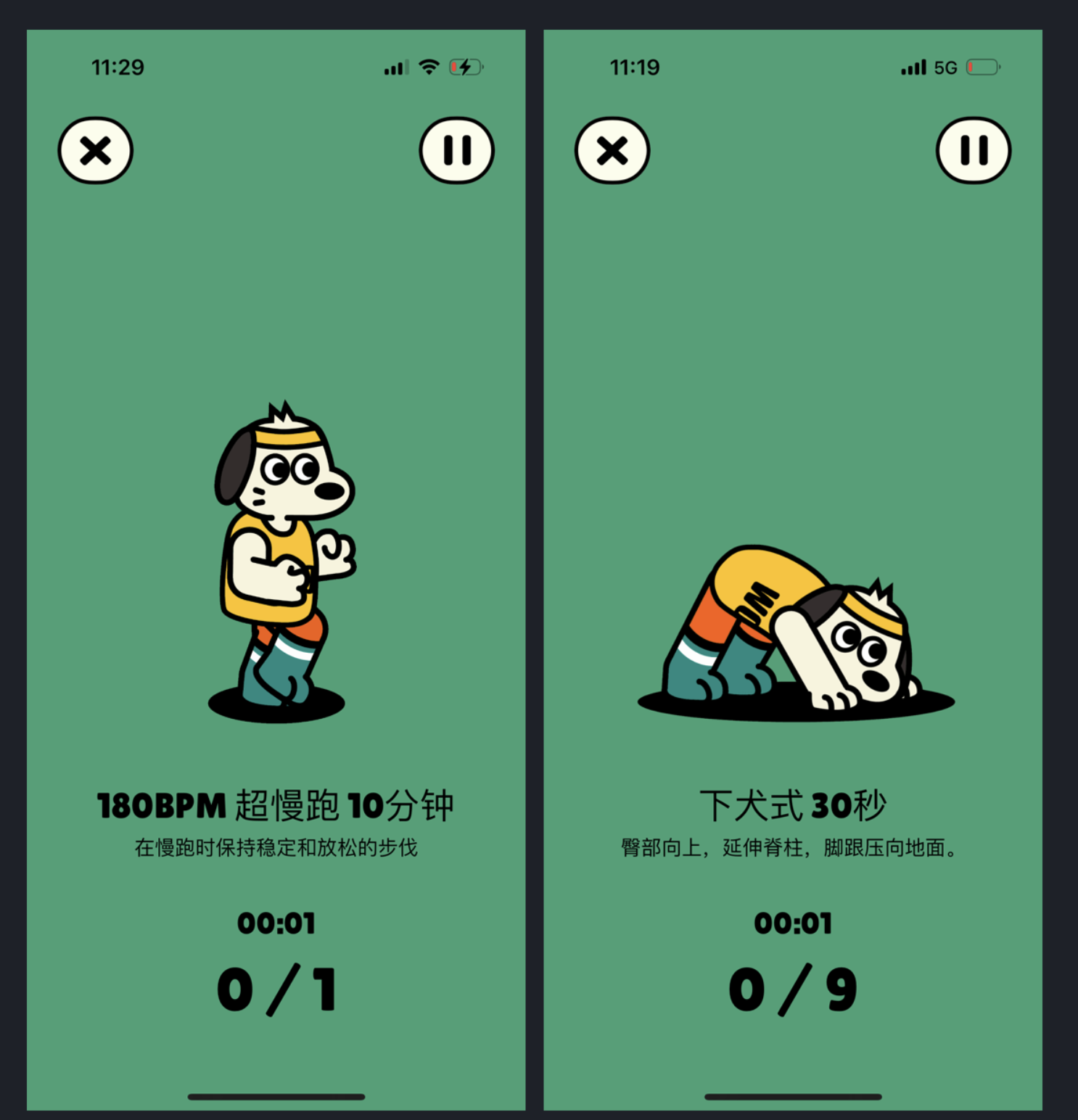打開 Rumbo,全程有個圓滾滾的卡通角色跟著你:做 “下犬式” 時,它會同步擺出同款姿勢,還會用萌萌的語氣提示 “腳跟再往下壓一點哦”;完成一組動作,它會搖著尾巴給你點贊。這個 IP 形象不是簡單的裝飾 —— 它把 “一個人運動” 變成了 “和小伙伴一起打卡”,減少了用戶的孤獨感;甚至有用戶說 “為了看它夸我,都愿意多練 5 分鐘”。
