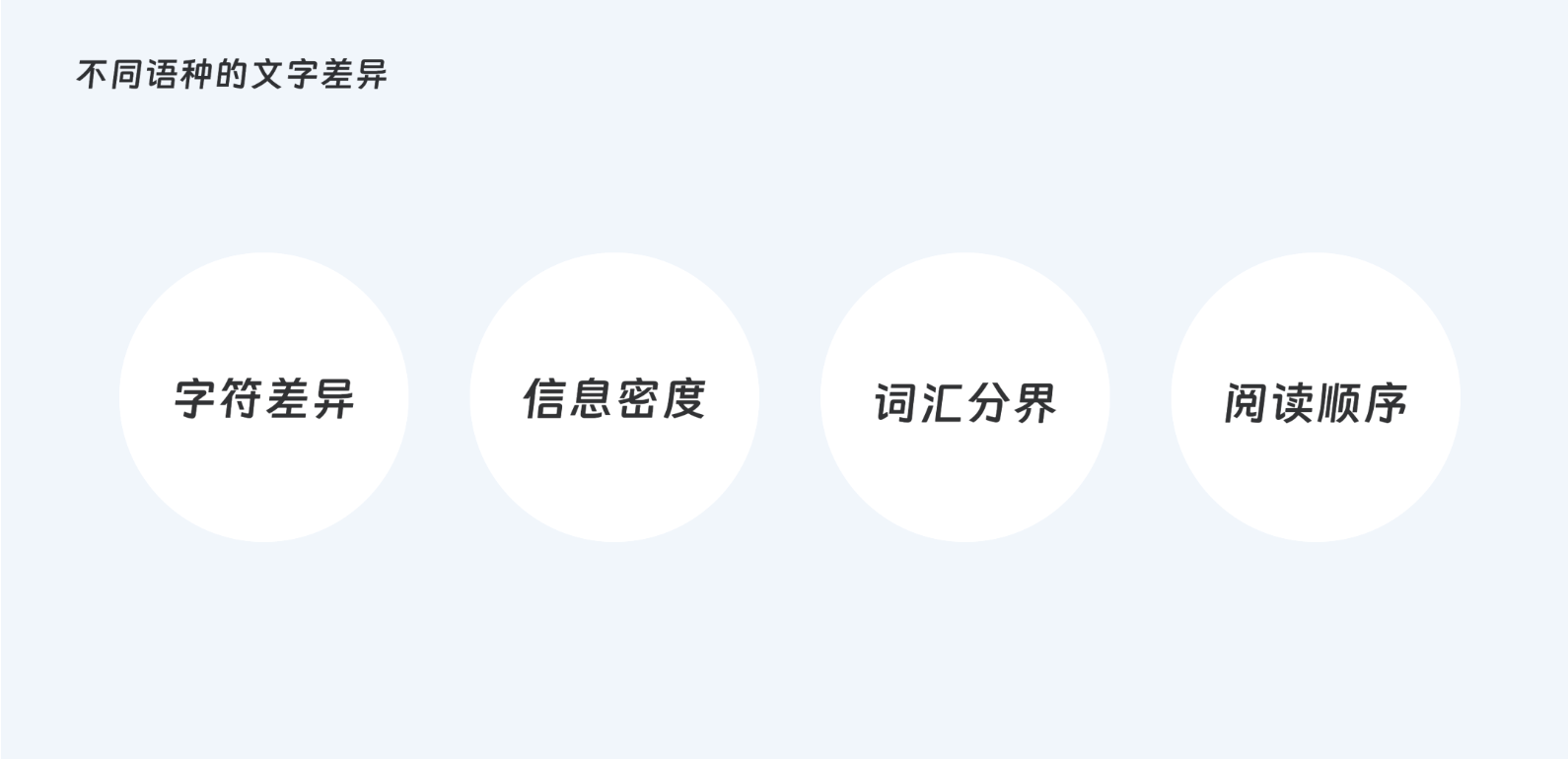 語言文字是文化差異最直觀的體現(xiàn),而其中四類差異對界面設(shè)計(jì)的影響最為顯著,直接決定了適配方案的方向: