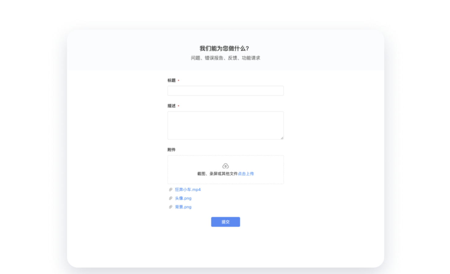 - 附件上傳區(qū)域明確標(biāo)注支持格式(如截圖、錄屏、PDF 等),降低用戶試錯(cuò)成本;