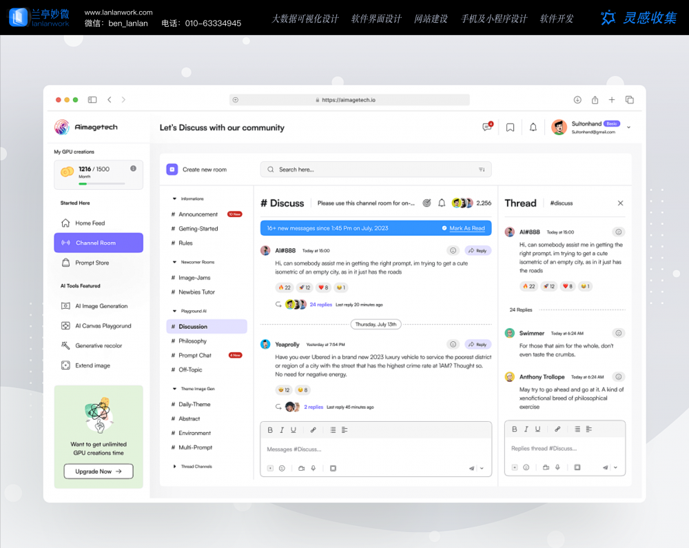 - 場景化功能聯(lián)動(dòng):左側(cè)導(dǎo)航欄集成 AI 工具、需求落地入口等,用戶在討論中產(chǎn)生的需求可直接跳轉(zhuǎn)至工具頁面,實(shí)現(xiàn) “討論 - 落地” 無縫銜接,減少跨平臺(tái)切換成本。