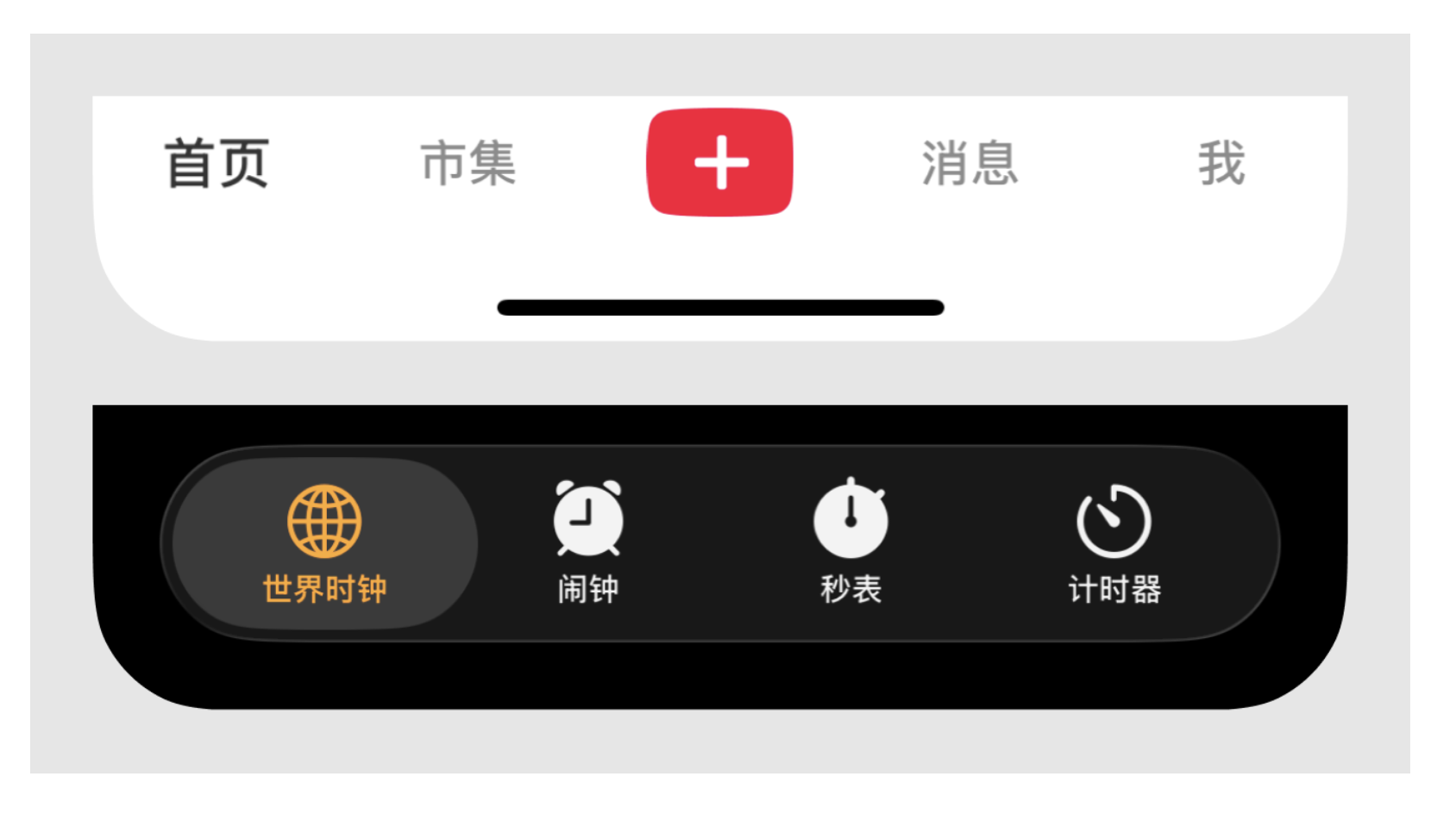 App 最高級別的導(dǎo)航控件,用于在頂級界面間快速切換,默認(rèn)位于屏幕底部(可自定義懸浮樣式)。僅層級最高的核心界面需保留標(biāo)簽欄,下級頁面可根據(jù)需求取舍。iOS26 新增懸浮式標(biāo)簽欄,支持與其他控件并列布局,還能根據(jù)頁面滾動、點(diǎn)擊狀態(tài)動態(tài)收起 / 展開,減少對內(nèi)容瀏覽的干擾。