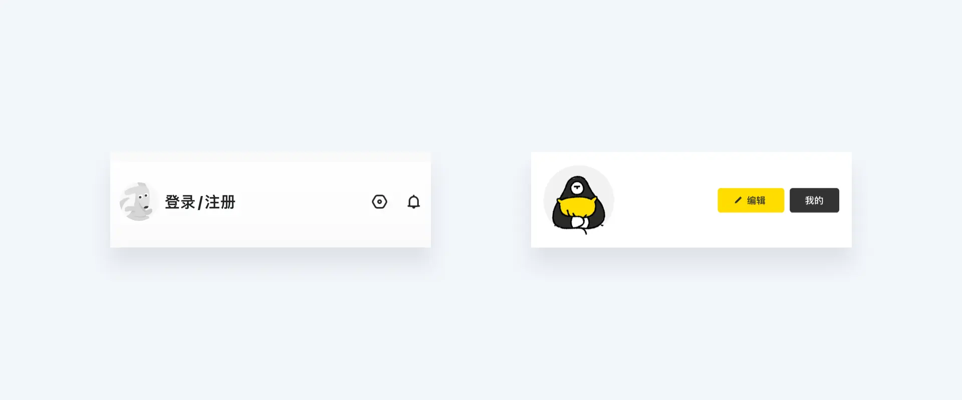 個(gè)人中心是承載用戶信息的核心頁(yè)面,也是用戶虛擬形象的展示窗口。傳統(tǒng)的默認(rèn)頭像加登錄文字的設(shè)計(jì),死板且缺乏溫度,無(wú)法讓用戶產(chǎn)生身份認(rèn)同感。如今,越來(lái)越多產(chǎn)品摒棄了這種單一設(shè)計(jì),為用戶提供多樣化的頭像選擇,賦予產(chǎn)品人格魅力,讓產(chǎn)品擁有生命力,消除人機(jī)交互的冰冷感,幫助用戶與產(chǎn)品建立友好的情感聯(lián)結(jié)。