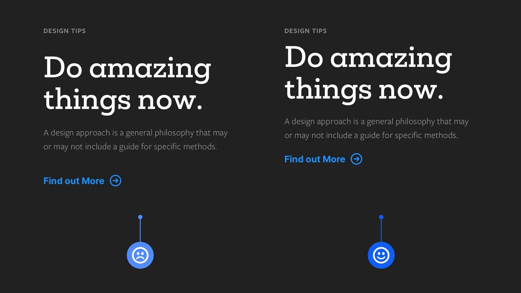 設(shè)計(jì)中推薦將標(biāo)題行高設(shè)置為文字大小的 1-1.3 倍,且標(biāo)題文字越大,行高的倍數(shù)可適當(dāng)降低。對(duì)比行高過高與行高適中的設(shè)計(jì)實(shí)例能明顯發(fā)現(xiàn),行高合適的標(biāo)題視覺更聚焦,能讓用戶快速捕捉核心信息。