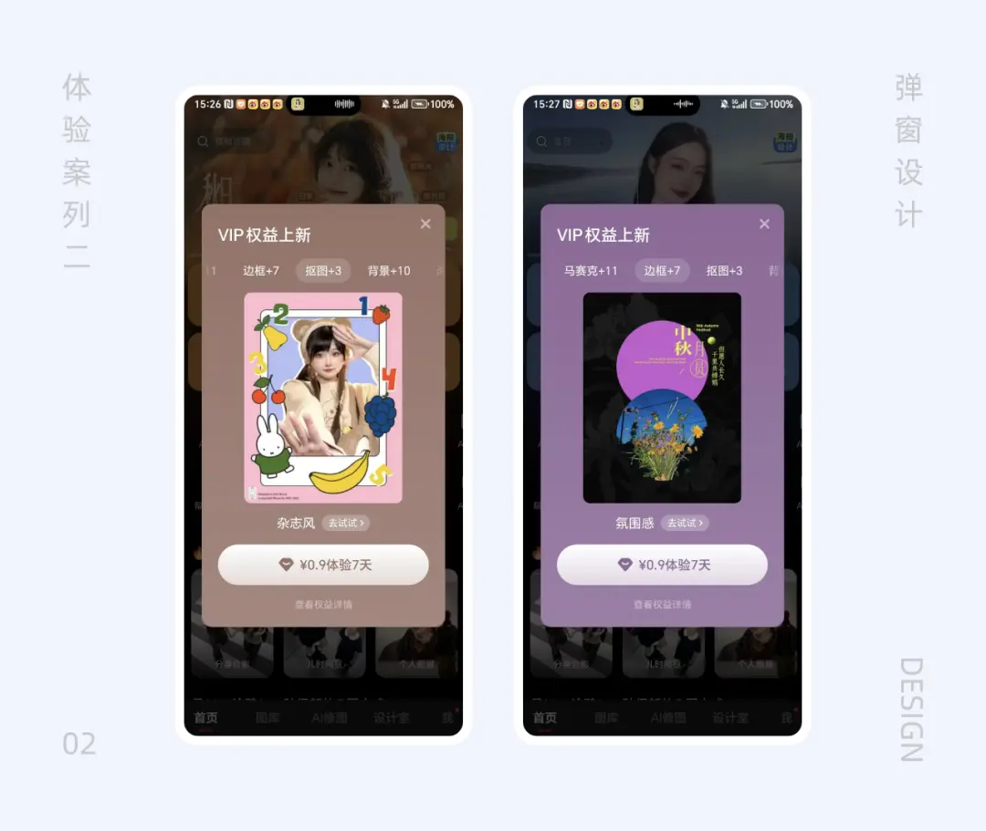 小卡片錯落超出大卡片的疊加形式,讓彈窗視覺上靈動有層次,同時保證信息傳達清晰明了,避免因設(shè)計疊加導(dǎo)致的內(nèi)容混亂。
