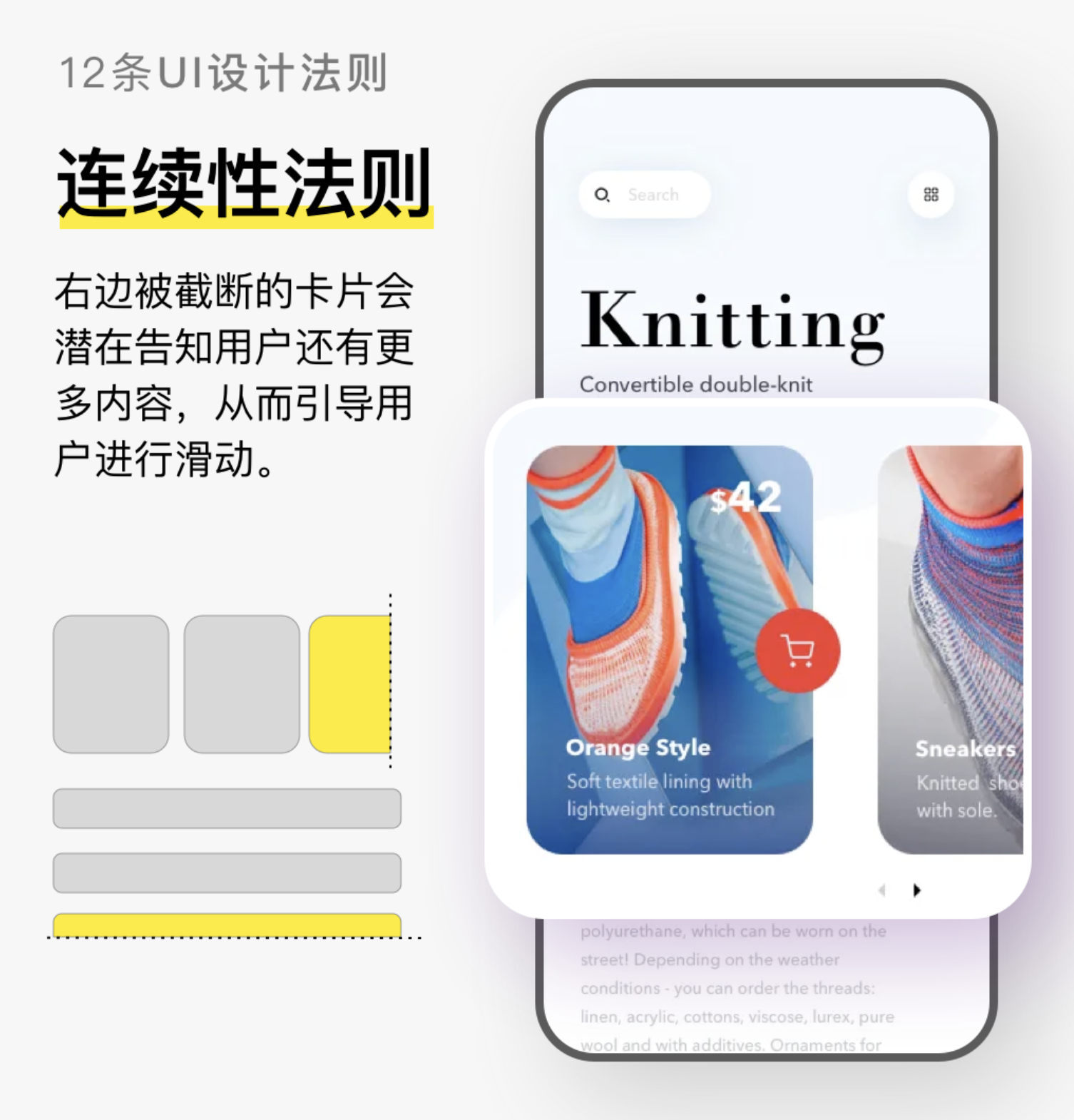 視覺連續(xù)性,能讓信息閱讀更連貫,同時(shí)隱性引導(dǎo)用戶完成預(yù)期操作,比如滑動(dòng)、翻頁、點(diǎn)擊等。