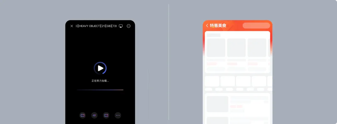 - 骨架屏:以灰色占位框提前展示頁面排版結(jié)構(gòu),搭配閃爍動效營造動態(tài)加載感,讓用戶預(yù)判加載內(nèi)容的呈現(xiàn)形式。既適用于 APP 首次打開的整頁加載,也可用于列表、卡片、個人主頁等模塊的局部加載,比單純的轉(zhuǎn)圈加載更能減少 “等待漫長” 的感知。