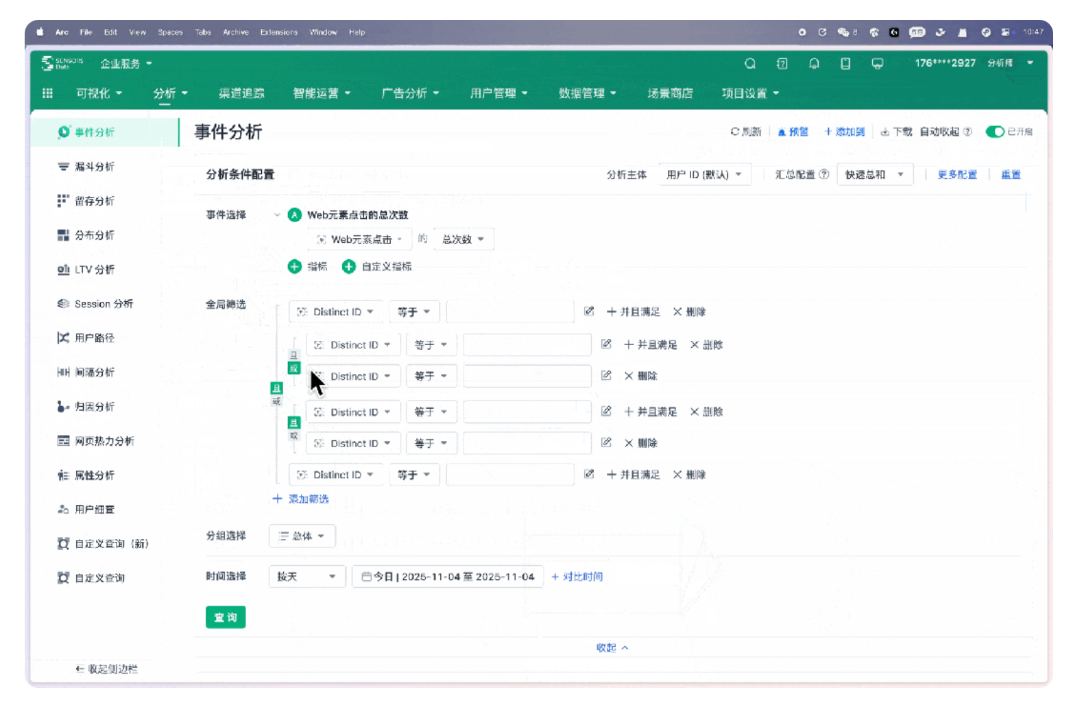 或就是這些條件滿足任意一個(gè)就能出結(jié)果,比如還是電商數(shù)據(jù),需要尋找對(duì)產(chǎn)品有興趣的潛在客戶,就需要篩選「近 90 天內(nèi)有過(guò)人工咨詢記錄、近 30 天內(nèi)訪問(wèn)產(chǎn)品詳情頁(yè)≥6 次、近 180 天內(nèi)提交過(guò)試用申請(qǐng)」,三個(gè)條件滿足任意一個(gè),這樣就能涵蓋更為全面。