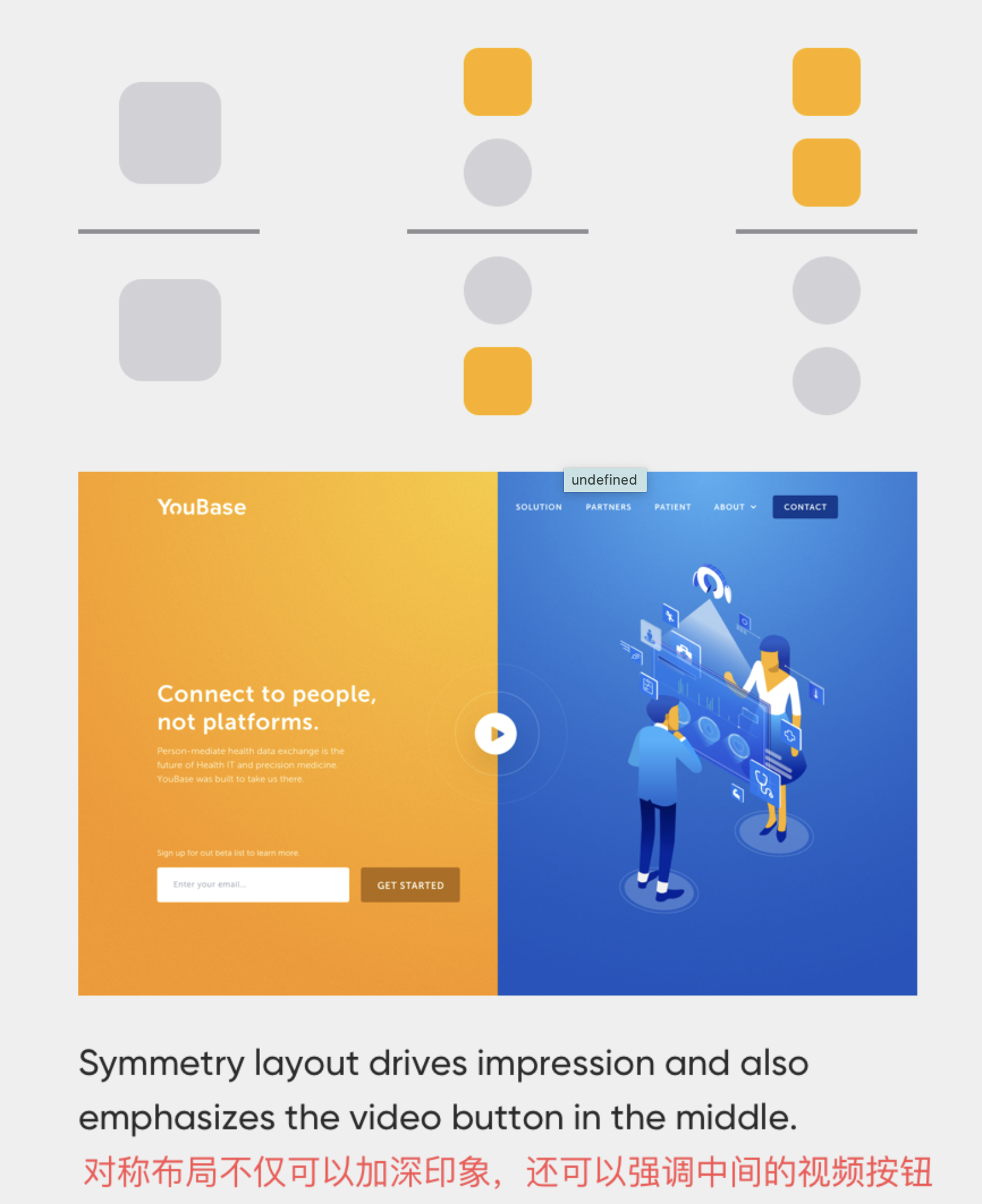 - 對(duì)稱律:對(duì)稱布局能帶來穩(wěn)定、秩序的視覺感受,是打造和諧界面的 “安全法則”。我們?cè)?banner 設(shè)計(jì)、產(chǎn)品核心功能展示區(qū)常運(yùn)用對(duì)稱布局,同時(shí)通過突出 CTA 按鈕、差異化標(biāo)題打破單調(diào),既讓用戶感到舒適,又能引導(dǎo)核心操作。