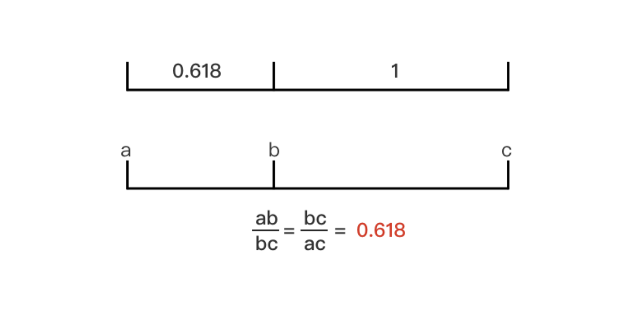 黃金分割比指將一條線段分割為兩部分,較長部分與整體部分的比值等于較短部分與較長部分的比值,其數(shù)值約為 0.618,分割線即為黃金分割線。這一比例的數(shù)學(xué)根源來自斐波那契數(shù)列:1、1、2、3、5、8、13、21、34、55…… 該數(shù)列從第 3 項開始,每一項都等于前兩項之和,相鄰兩項相除的結(jié)果會無限趨近于 0.618。在 UI 設(shè)計中,我們將接近這一數(shù)值的比例稱為近似黃金分割比,是實際設(shè)計中更具操作性的應(yīng)用形式。