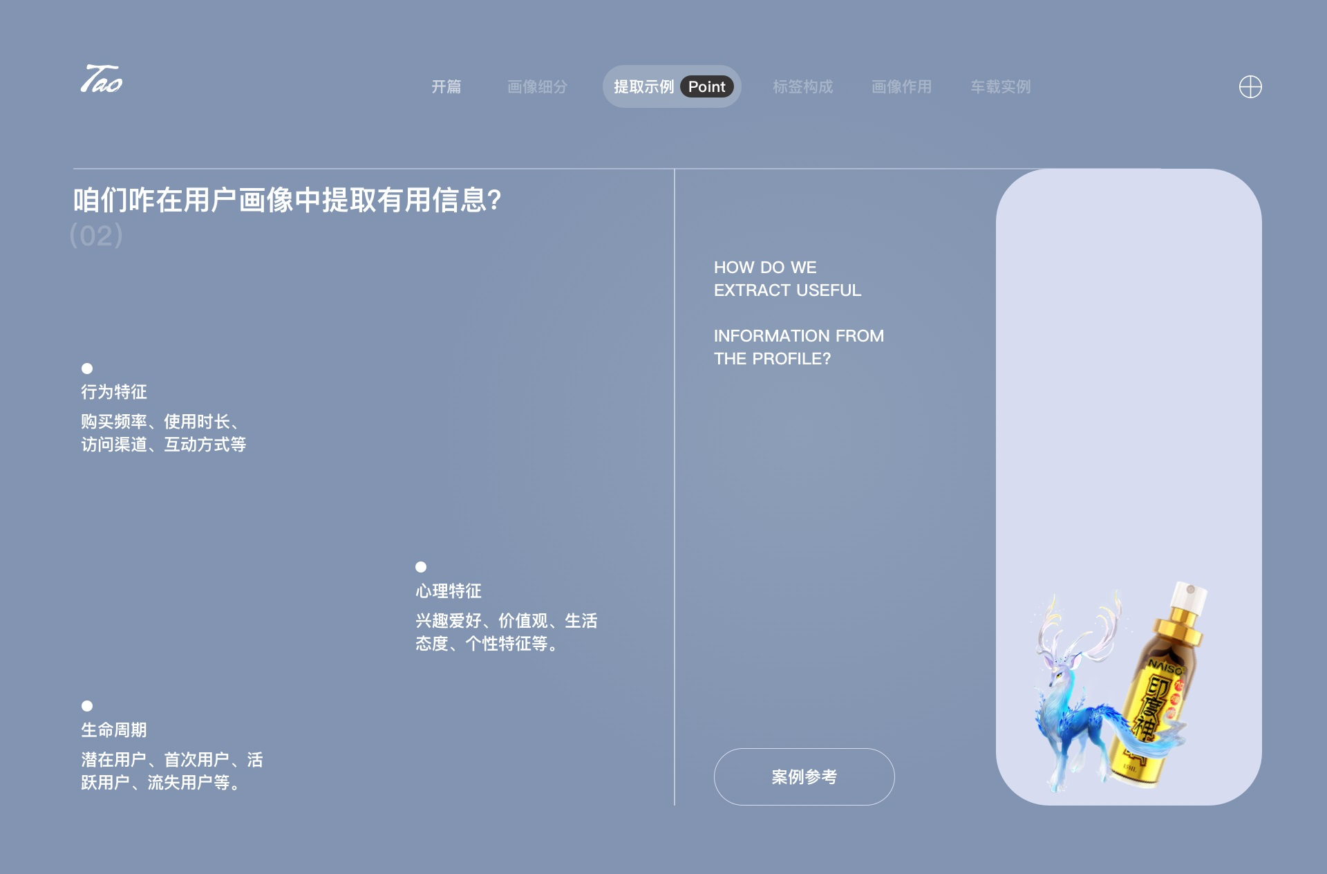 對某類人中的典型用戶跟蹤總結(jié) ,其中包含個人屬性、生活方式、社會屬性、家庭屬性等等。