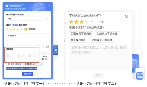 (3)灰度上線或全量上線后,我們通常會(huì)對上線后的新方案進(jìn)行對比性可用性測試,通過灰度方式在同一時(shí)間維度下比較新方案和原方案的可用性反饋和用戶滿意度,確保方案在全量上線之前修復(fù)任何潛在問題。因此,在該階段我們以 A/B 測試+場景化調(diào)研問卷(如下圖所示)為主,通過用戶體驗(yàn)數(shù)據(jù)和業(yè)務(wù)數(shù)據(jù)來評估出最優(yōu)版本。