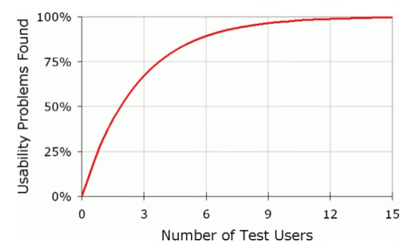 諸如此類的樣本數(shù)量“挑戰(zhàn)”,不勝枚舉。人機(jī)交互博士 Jakob Nielsen 曾提出:“有 5 個(gè)人參加的用戶測試,即可發(fā)現(xiàn)大多數(shù)(85%)的產(chǎn)品可用性問題。” Nielsen 這張經(jīng)典圖表(如下圖)告訴我們答案:一般最嚴(yán)重的問題都是前幾名用戶發(fā)現(xiàn)的,隨著用戶數(shù)量增多,發(fā)現(xiàn)問題逐漸減少。