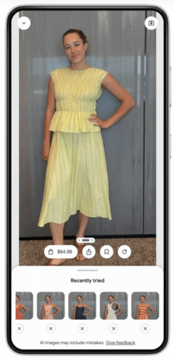 案例4:谷歌將虛擬試穿門(mén)檻降至只需一張自拍,借助Gemini Nano Banana生成全身模型,將AI從可選趣味功能升級(jí)為低門(mén)檻、便捷實(shí)用的購(gòu)物入口,進(jìn)一步將搜索與電商融合為一體化、內(nèi)容驅(qū)動(dòng)的消費(fèi)場(chǎng)景。