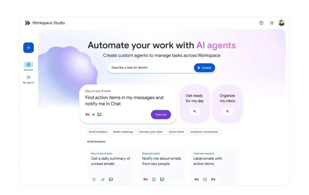 案例5:谷歌推出Workspace Studio,將AI自動(dòng)化直接嵌入Gmail、日歷與文檔,開(kāi)始重構(gòu)企業(yè)日常工作的操作層。